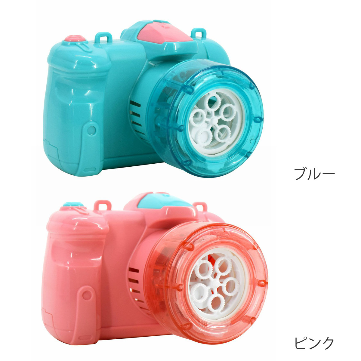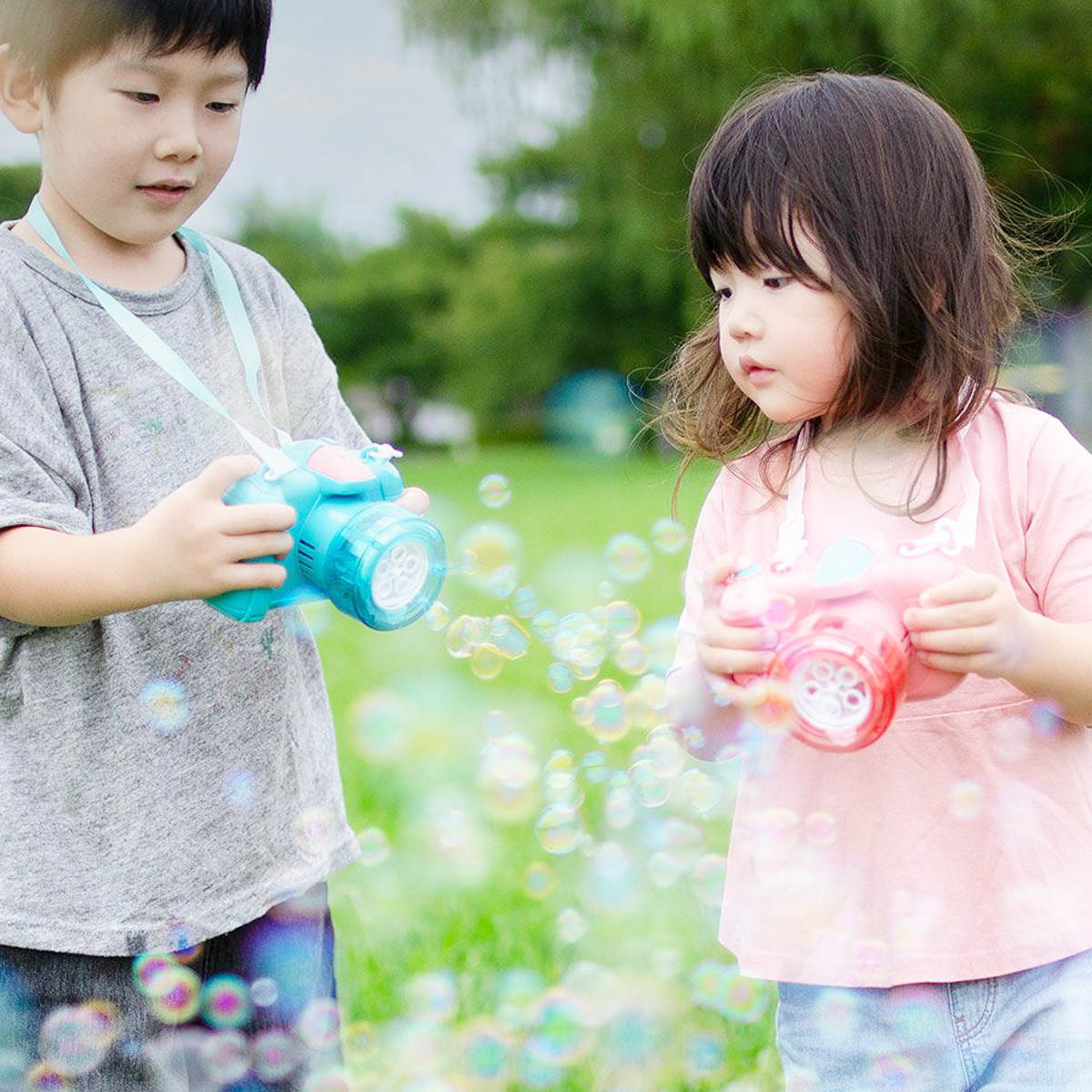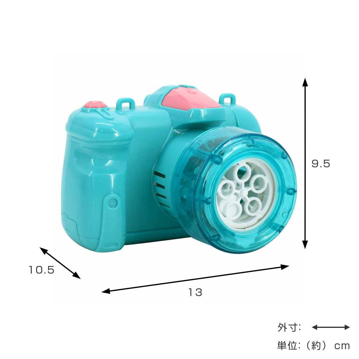 思わず写真を撮りたくなるようなカメラ型のシャボン玉マシーンです。ポップでかわいいデザインと光るギミックで、遊びの時間をより盛り上げます。