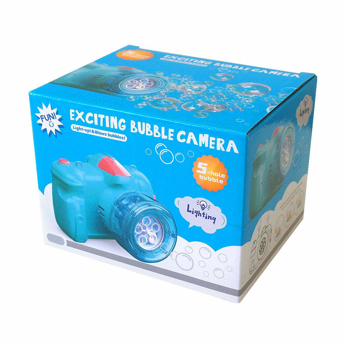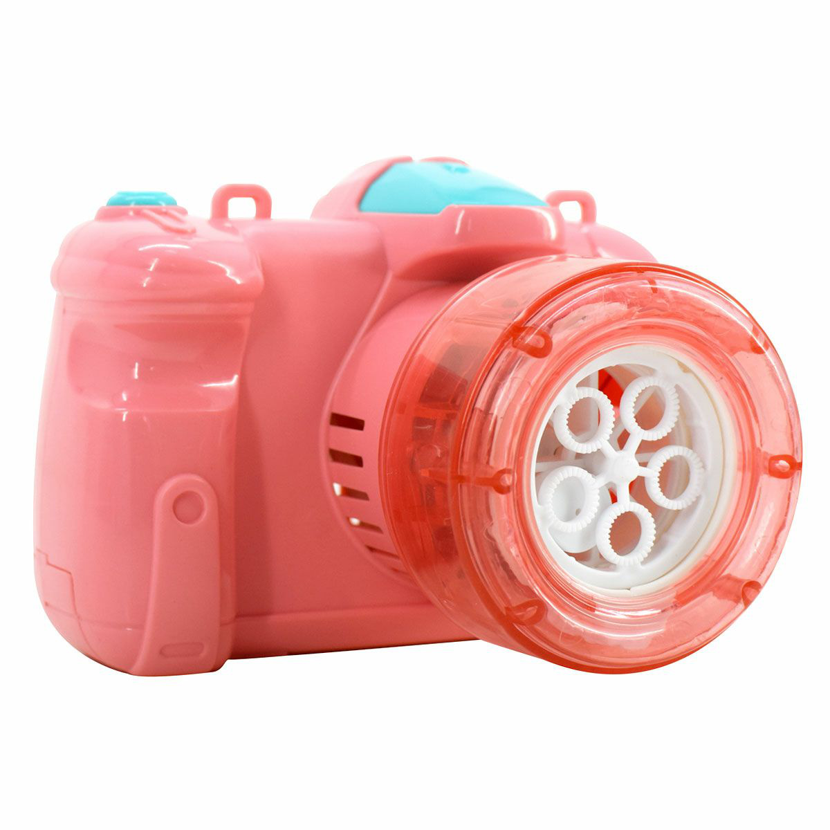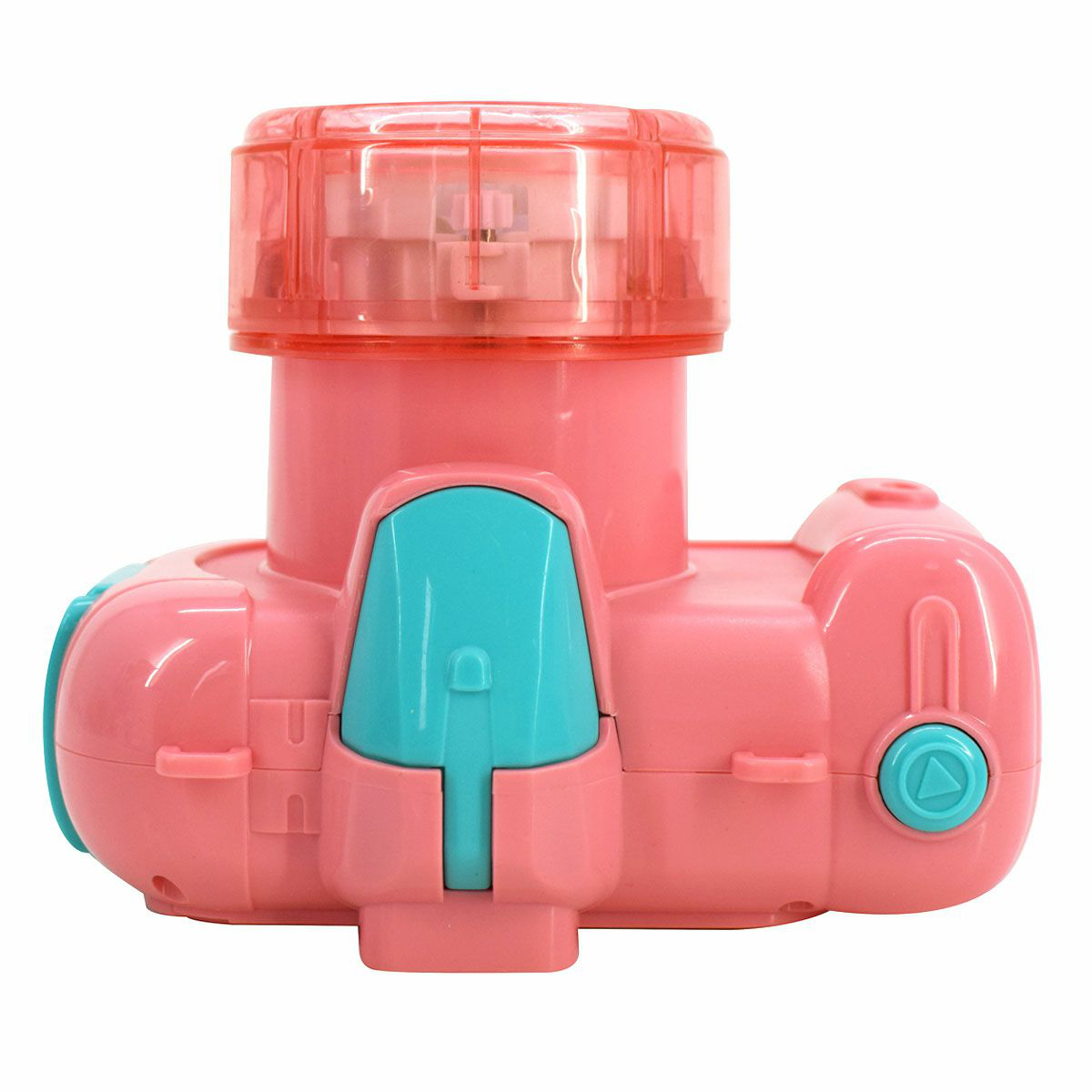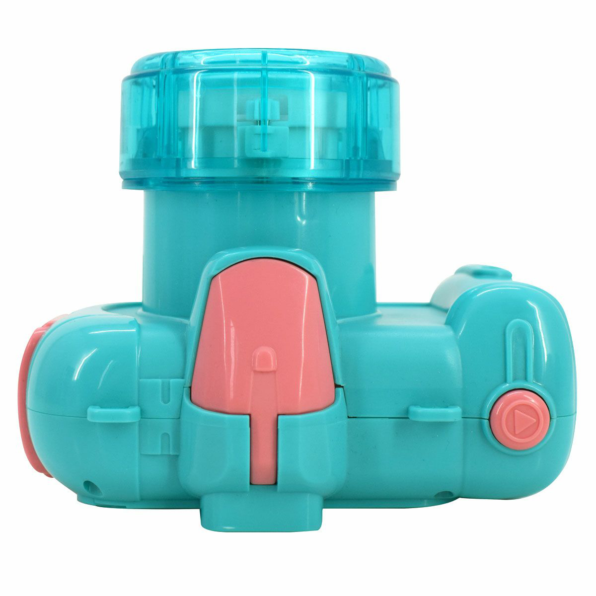 思わず写真を撮りたくなるようなカメラ型のシャボン玉マシーンです。ポップでかわいいデザインと光るギミックで、遊びの時間をより盛り上げます。