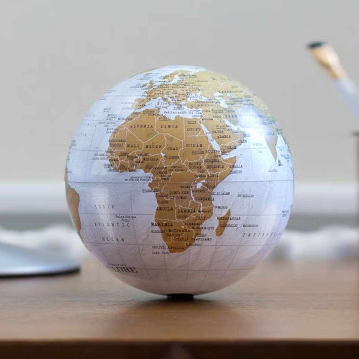 眺めているだけでどこか遠い国へ旅をしている気分になる地球儀です。コンパクトサイズなので場所を取らずに楽しめます。