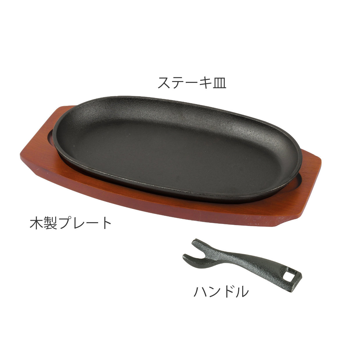 | サイズ | ステーキ皿:約 幅27.5×奥行16×高さ2.5(cm) 木製プレート:約 幅32×奥行16.5×高さ1.5(cm) セット時:約 幅32×奥行16.5×高さ3.5(cm) |