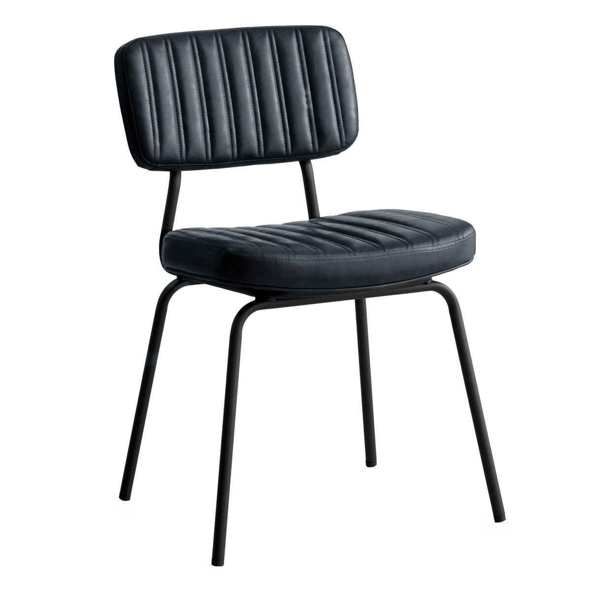 レザー調×スチール脚の異素材ミックスが、上品なヴィンテージ感を演出。 丸みのある脚部とすっきりとしたフォルムで、落ち着いた空間に自然に馴染みます。