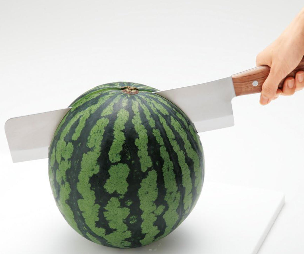 長い刃でスイカを丸ごとカット
