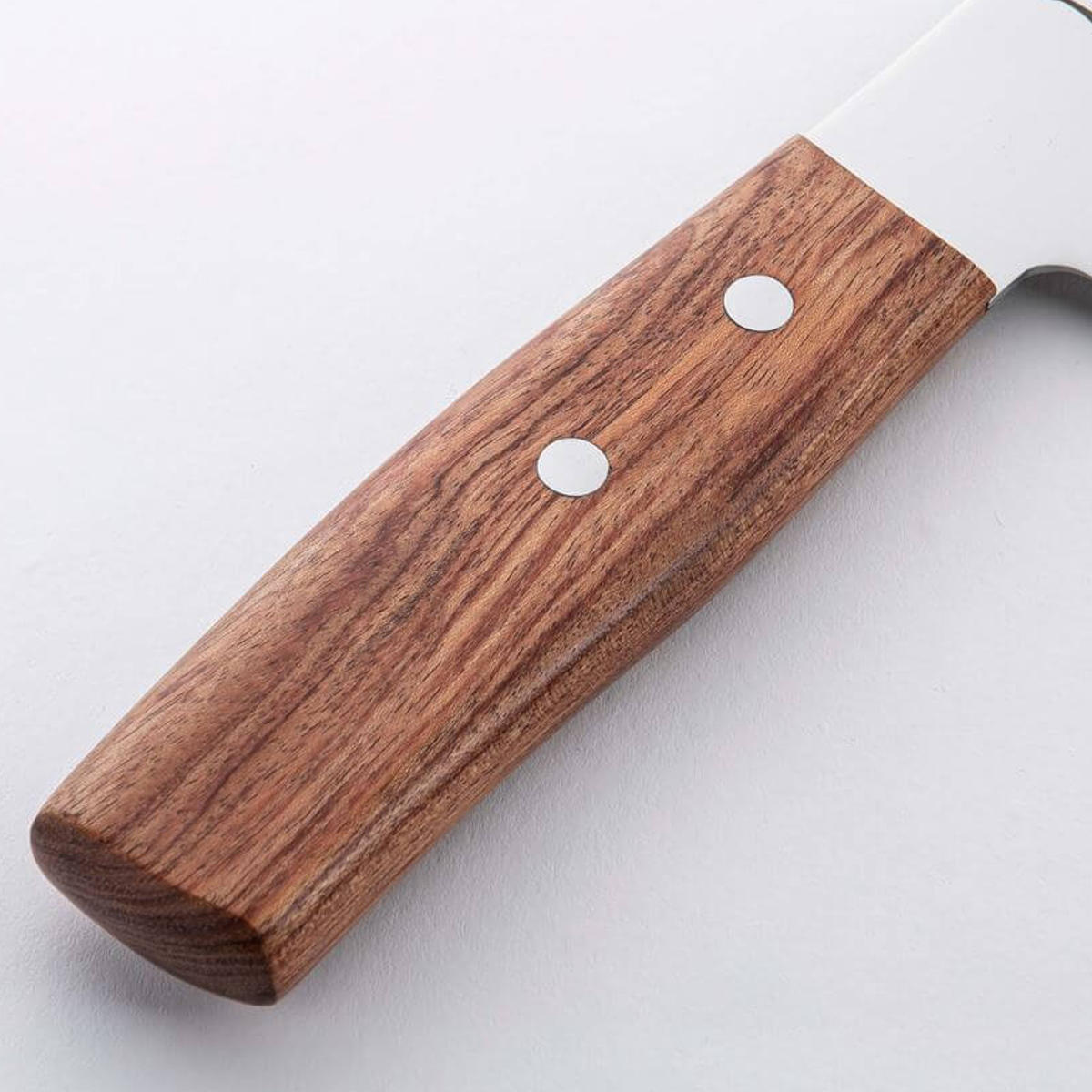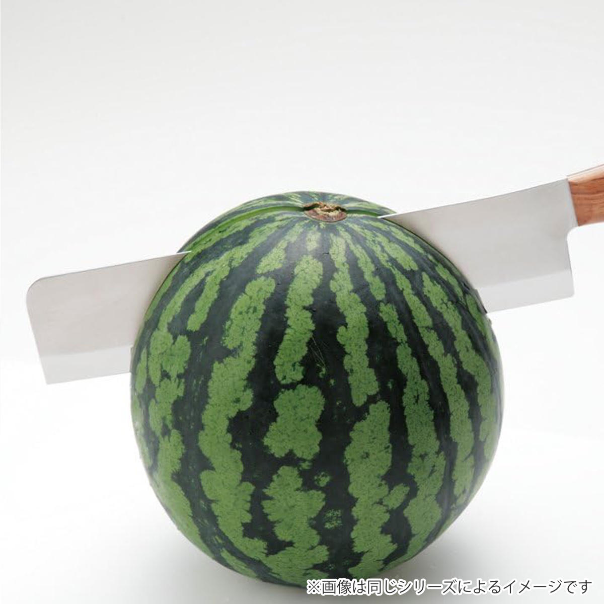 夏のスイカなど大きな野菜を切り分けるのに適した、刃渡りの長い専用包丁です。刀身にはハイカーボンステンレス刃物鋼を採用。鋭い切れ味を備えながらもさびに強く、日常的なメンテナンスがしやすいのが特徴です。