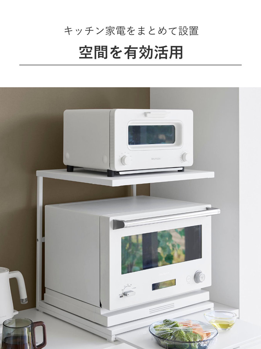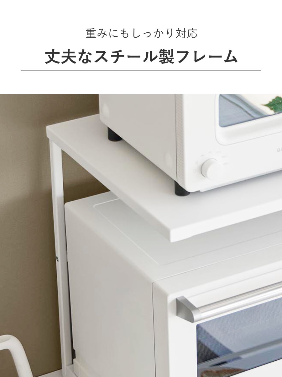 丈夫なスチール製フレームで安定感があり、家電の重みにもしっかり対応。シンプルなデザインなので、さまざまなテイストのキッチンに自然になじみます。