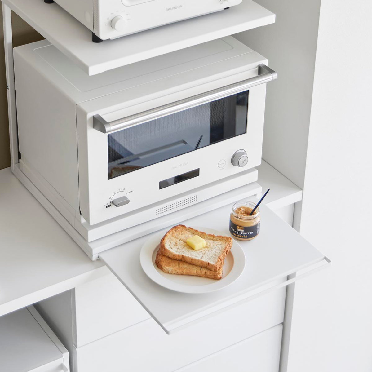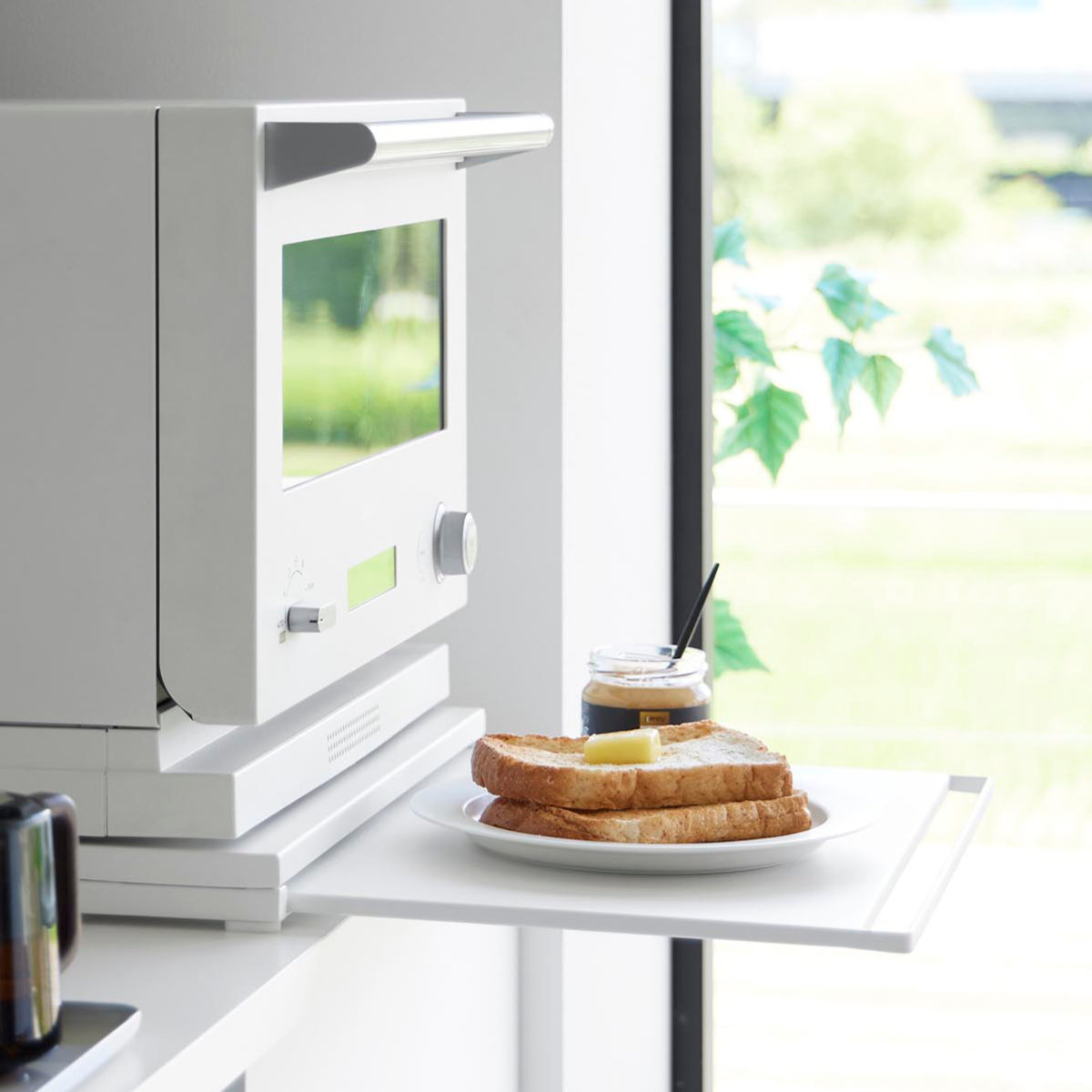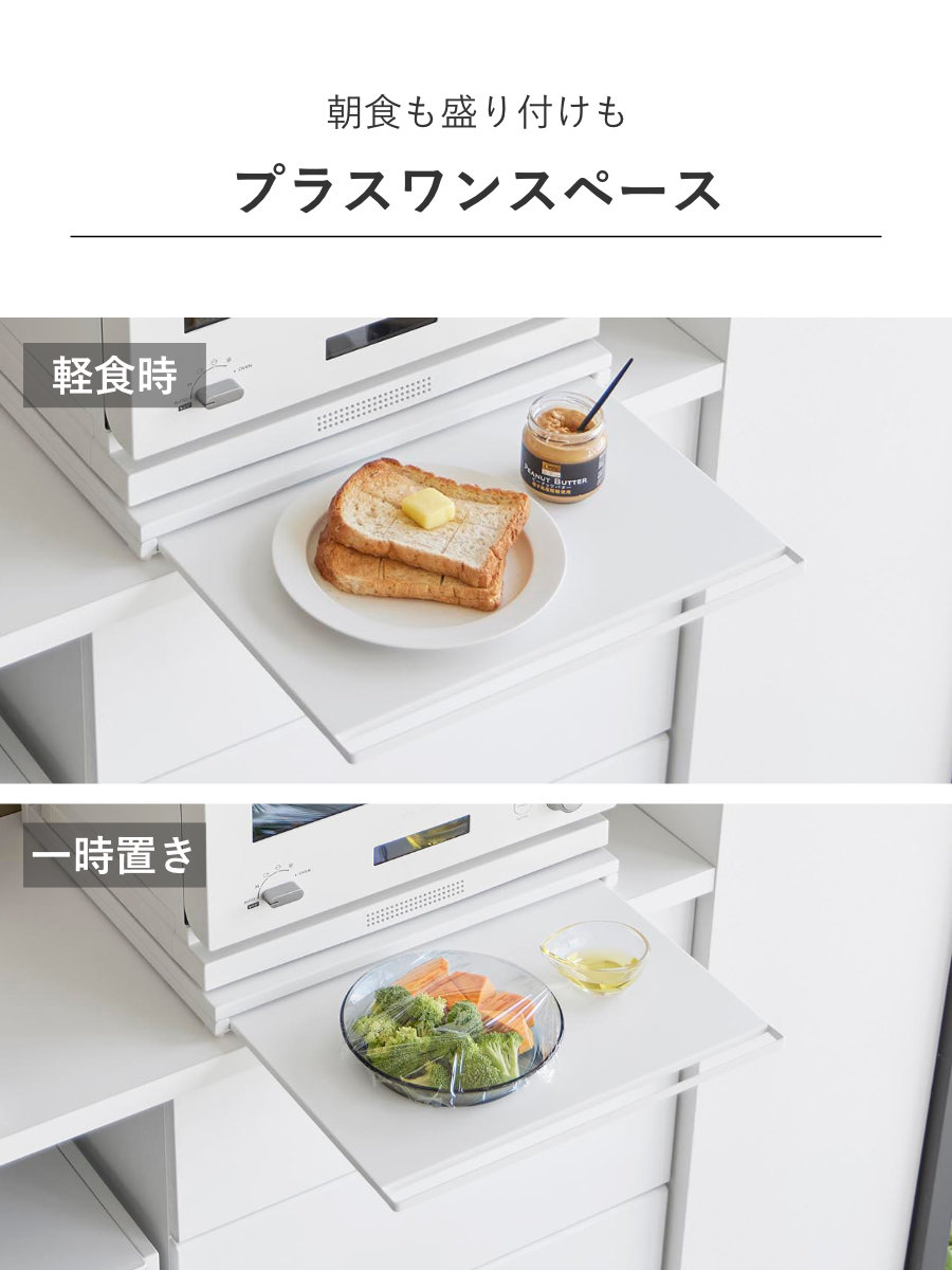 忙しい朝の朝食準備や、調理中の一時置きスペースとしても活躍。使用しないときはスッと収納できるため、キッチンをすっきりと美しく保てます。