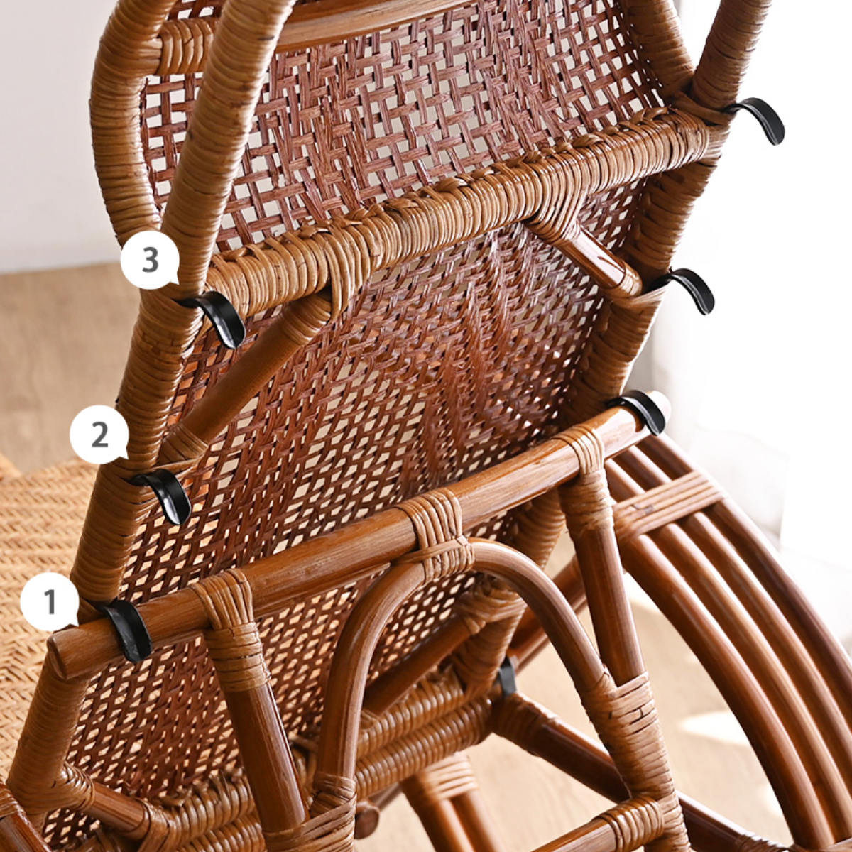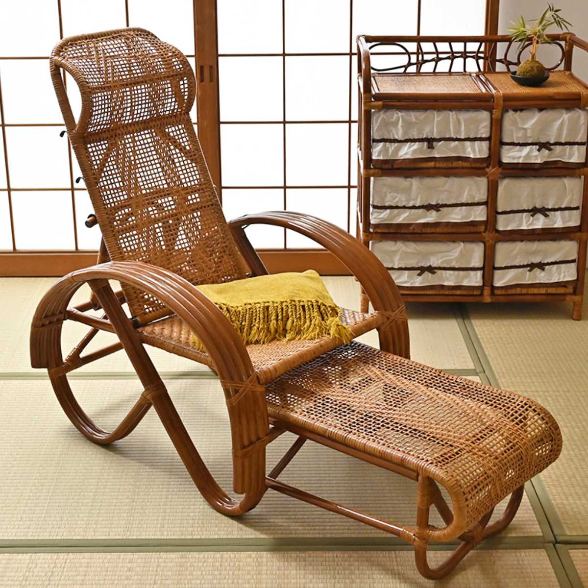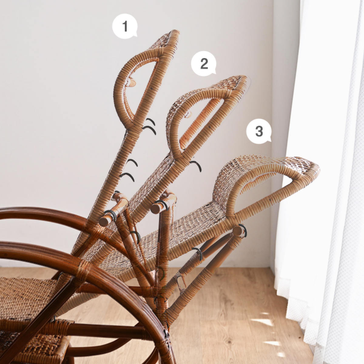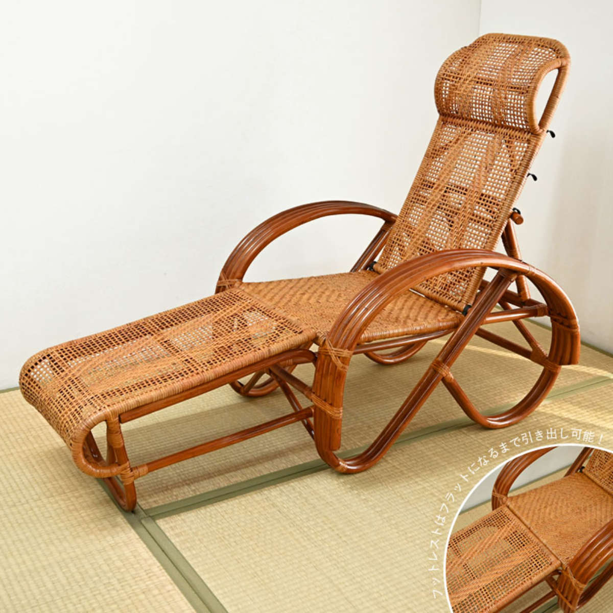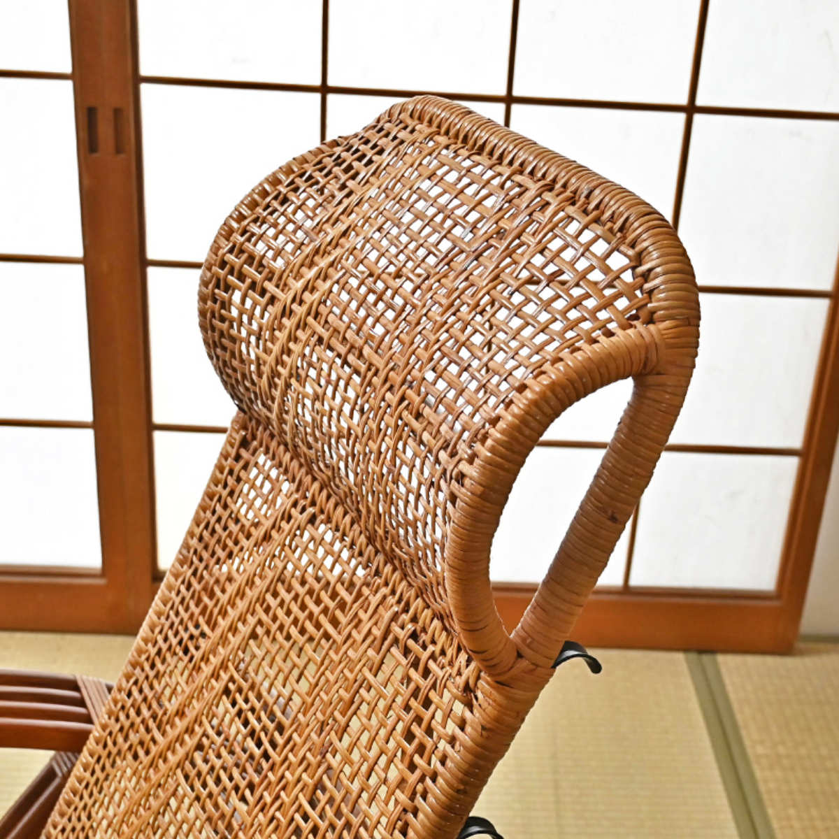 天然ラタンのやさしい風合いと、身体をゆったり預けられるリクライニング設計のチェアです。職人の手仕事で丁寧に編み上げられた座面と、ハイバック+フットレストで 、リラックスタイムをもっと心地よく快適に過ごせます。