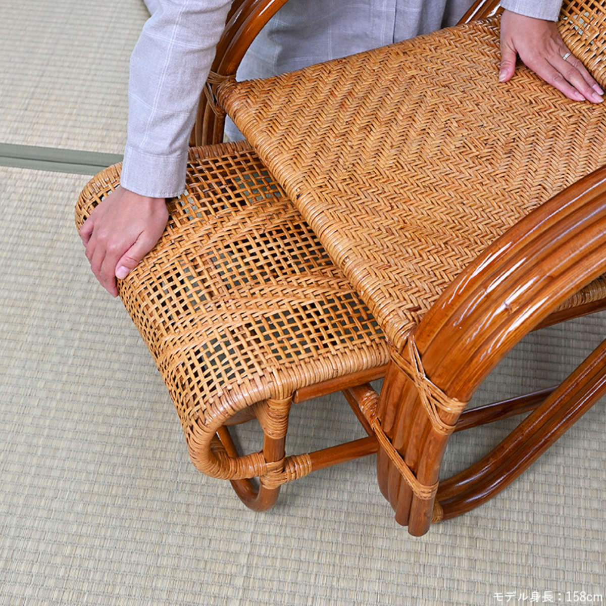 握りやすい太さのラタン肘掛け付き。立ち上がる際の支えとしても使えるため、日常の動作をサポートしてくれます。