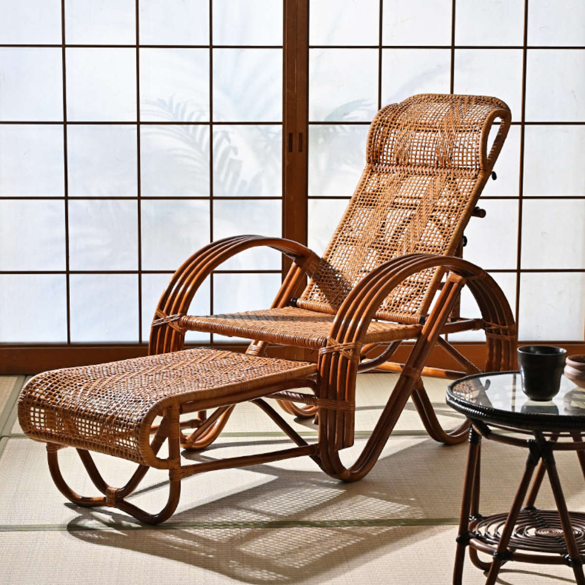 リクライニングでくつろげる、天然ラタンのパーソナルチェア