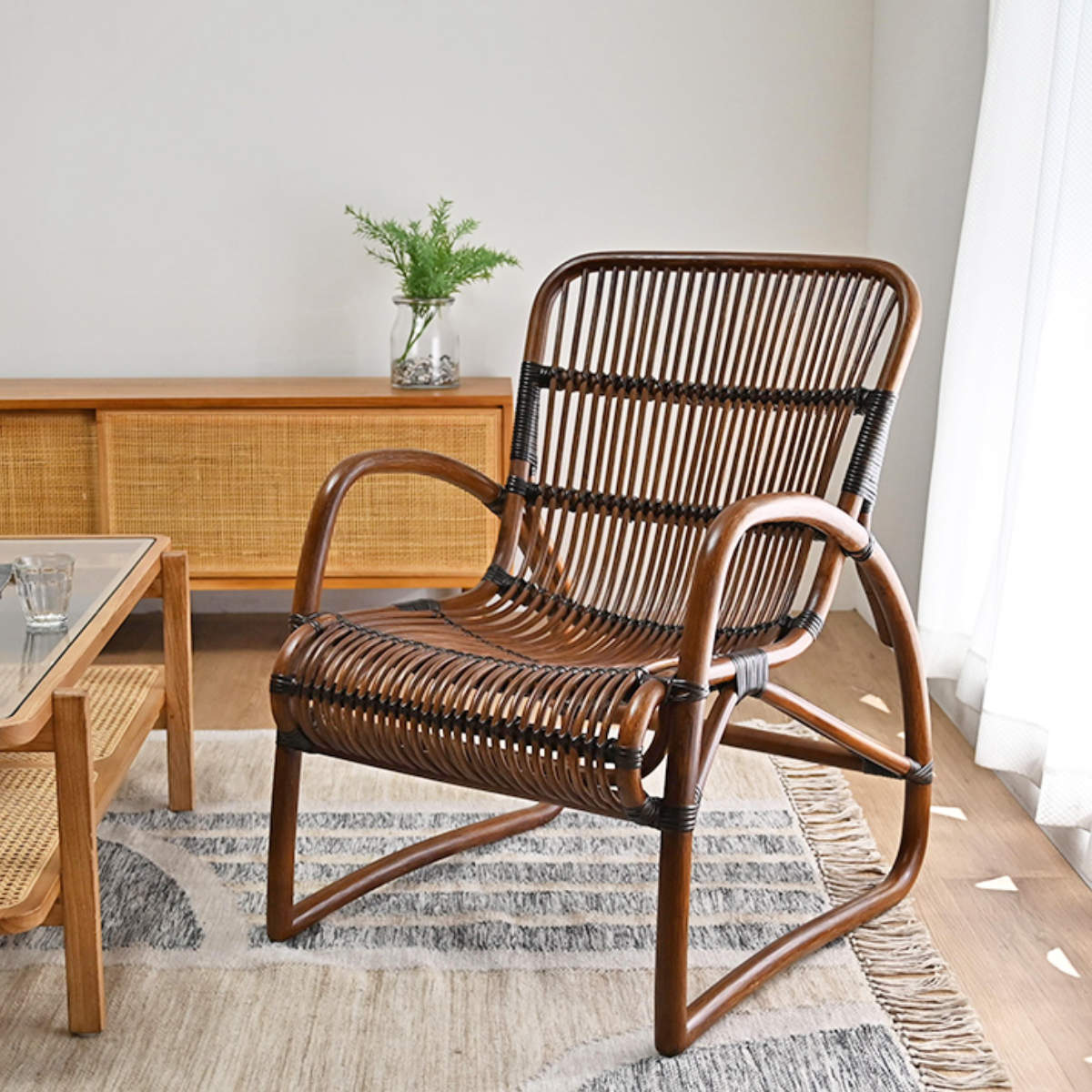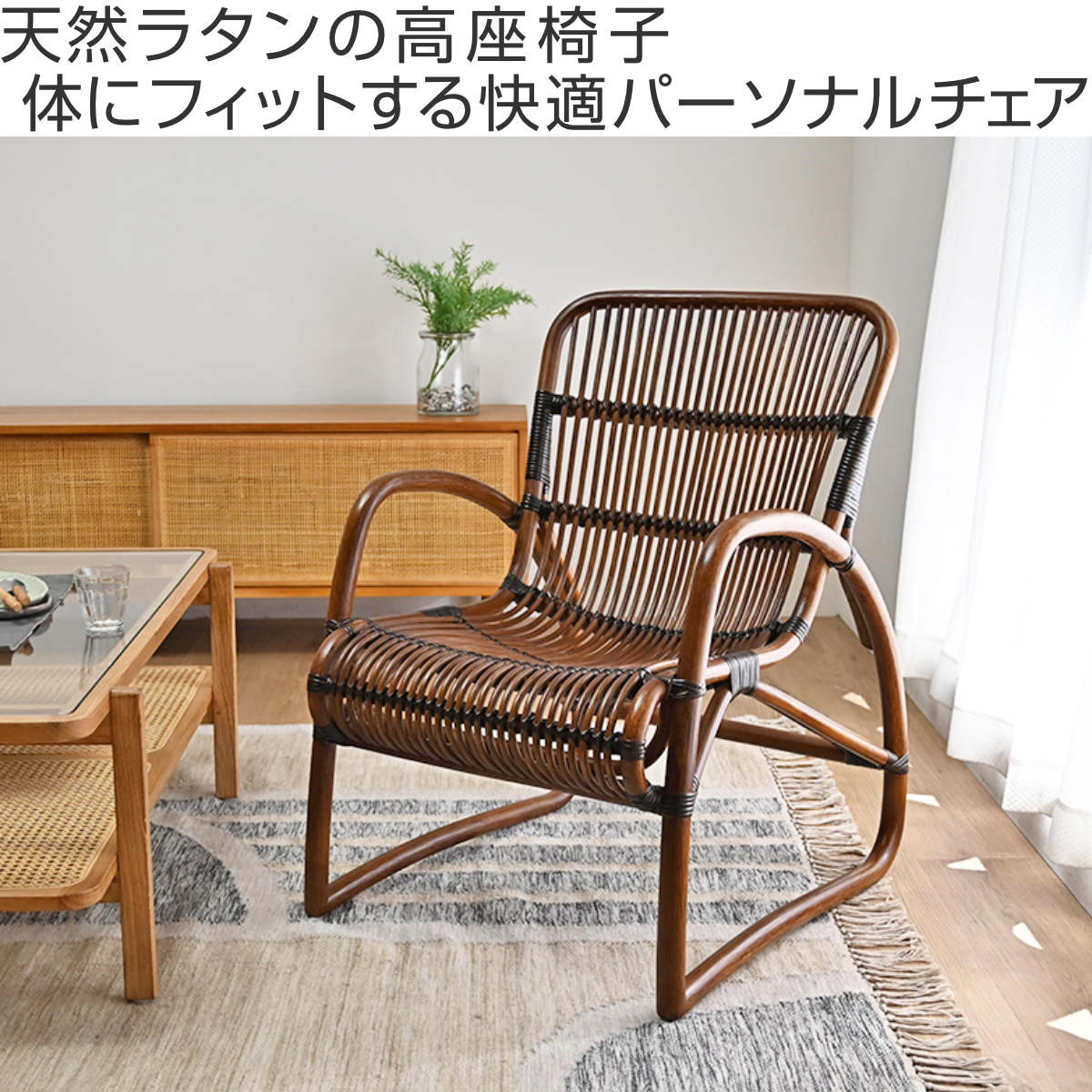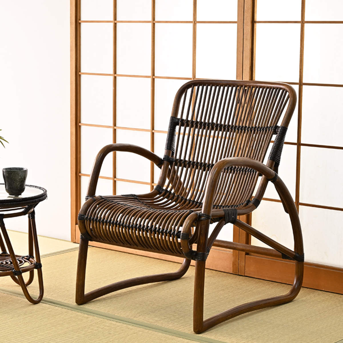 ラタンの曲線美とすっきりとしたフォルムが魅力で、和室にも洋室にも自然に馴染み、長く愛されるデザインです。