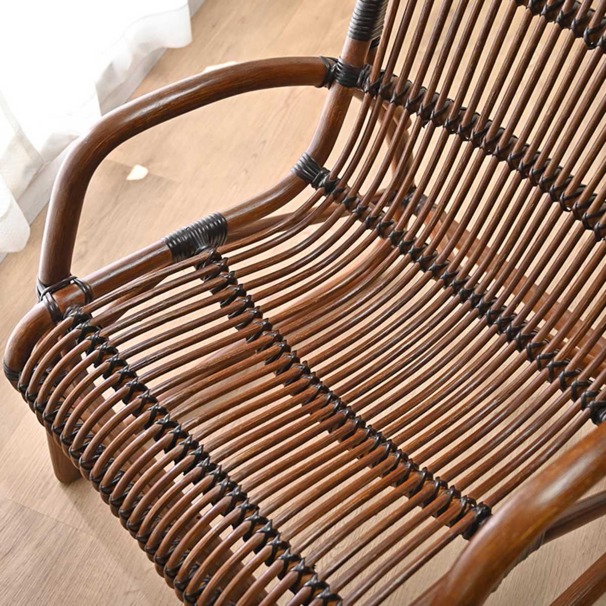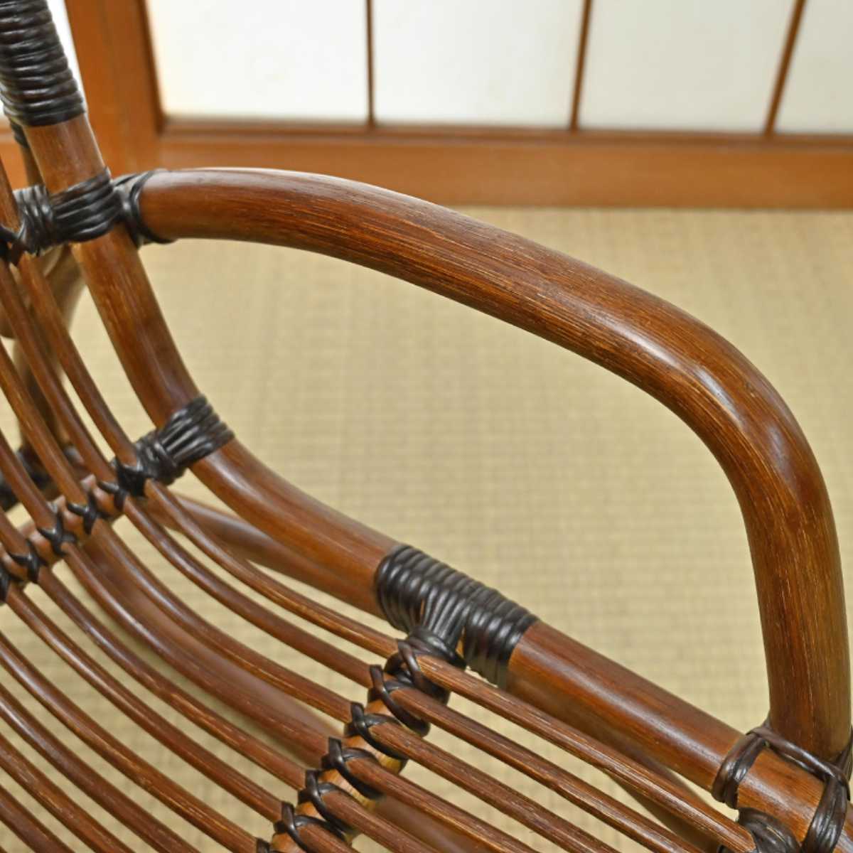 直径32mmの太いラタン肘掛けです。握りやすく、しっかり体を支えます。立ち座りの動作も安心です。
