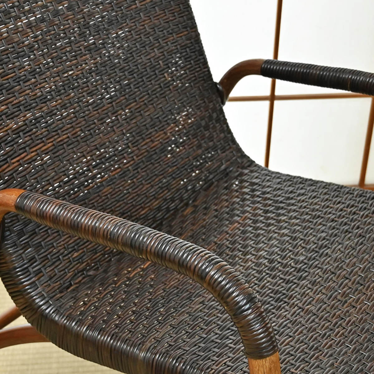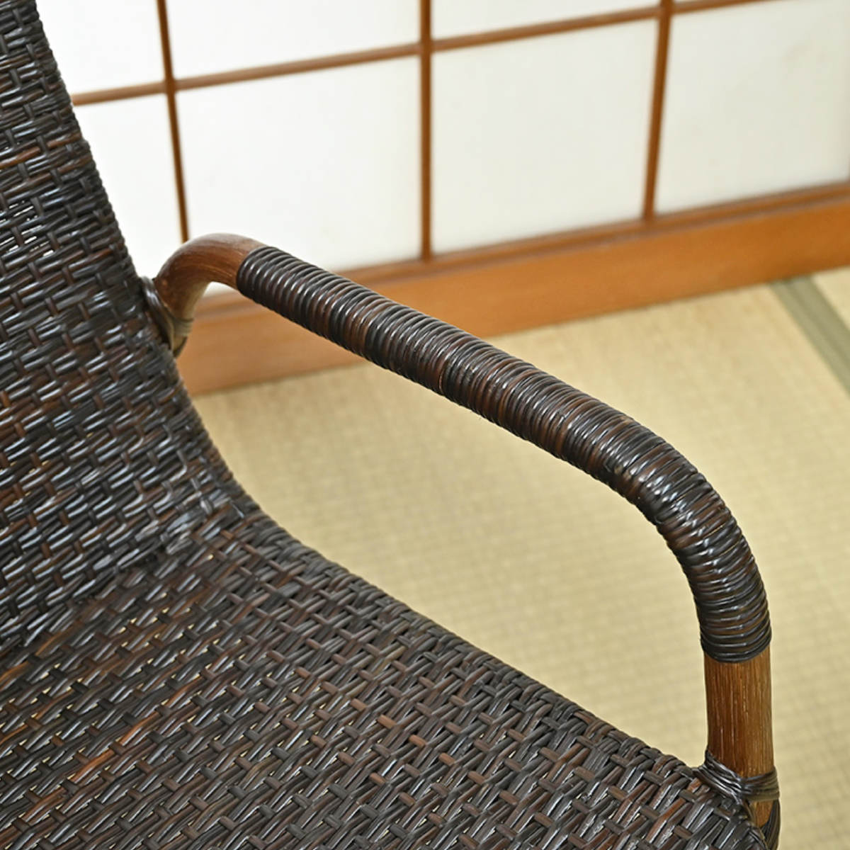 太めのラタン肘掛けが体を支え、立ち座りをサポートします。握りやすく、しっかり体を支えます。立ち座りの動作も安心です。