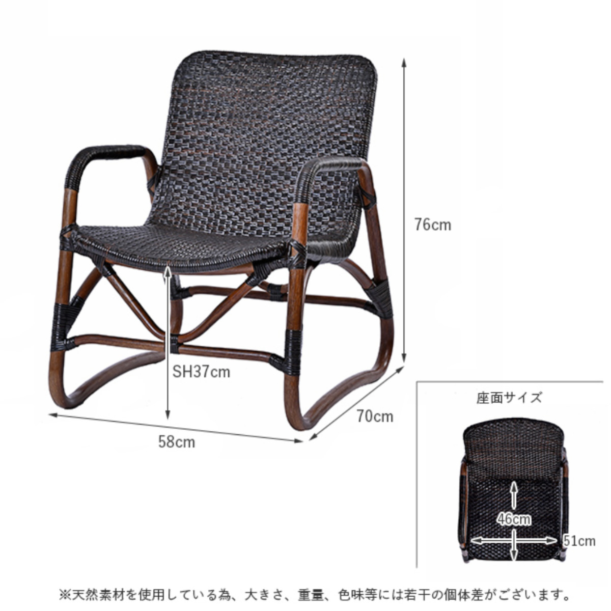 | サイズ | 約 幅58×奥行70×高さ76(cm) 座面高:約 37(cm) |
