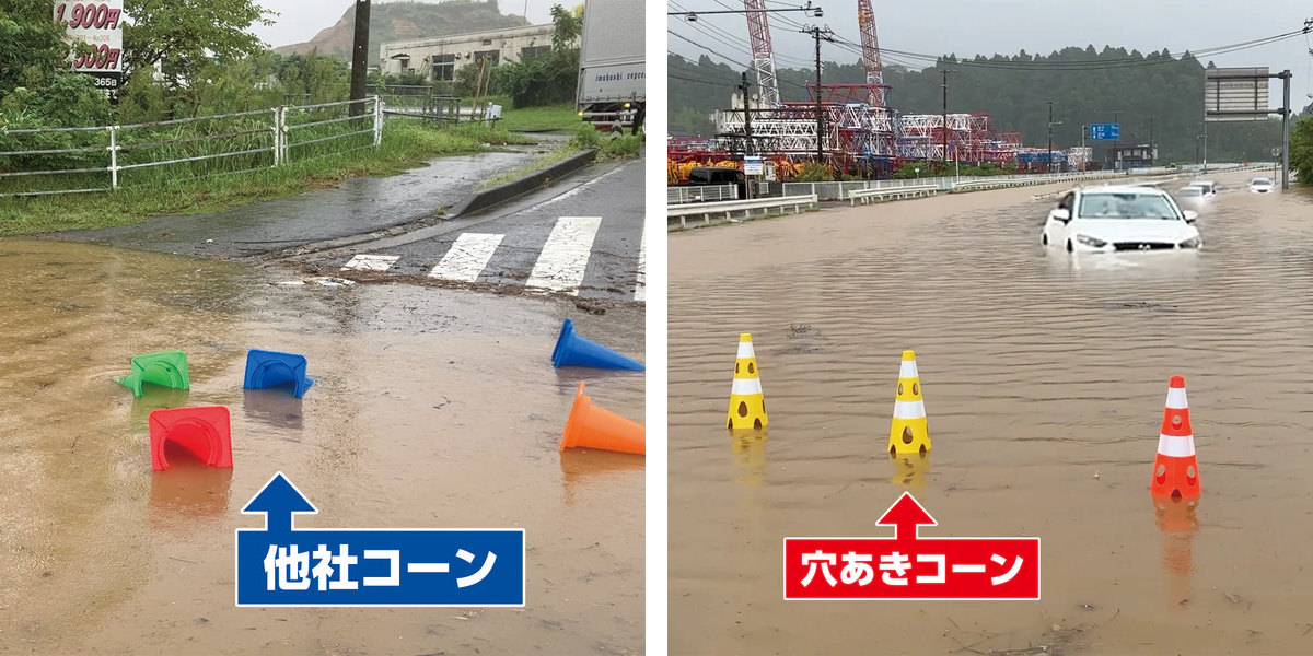 風や水に強い穴あきカラーコーン