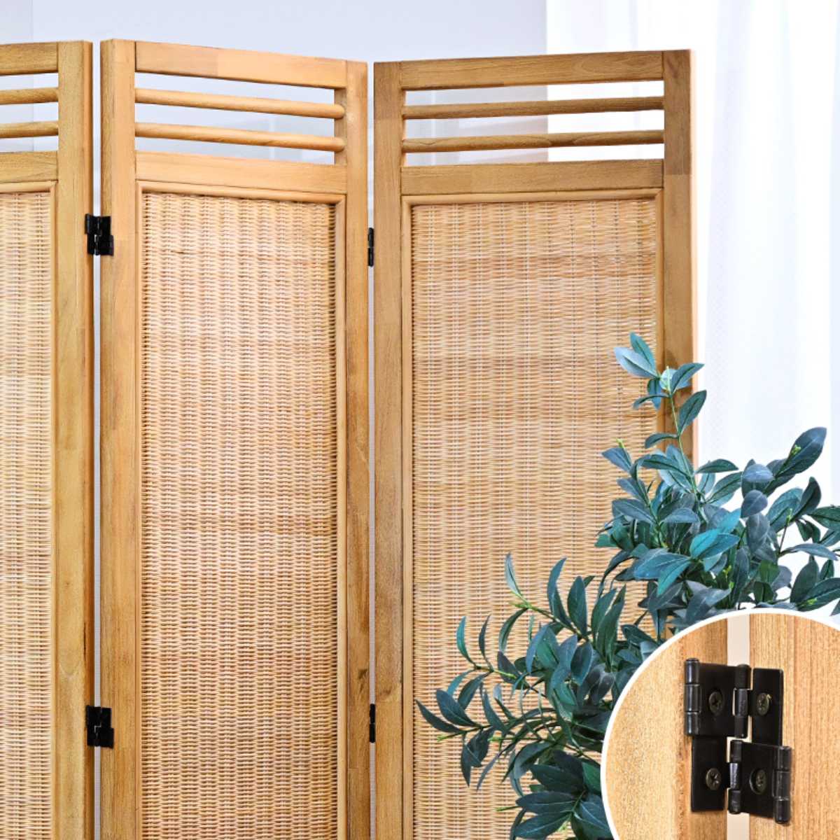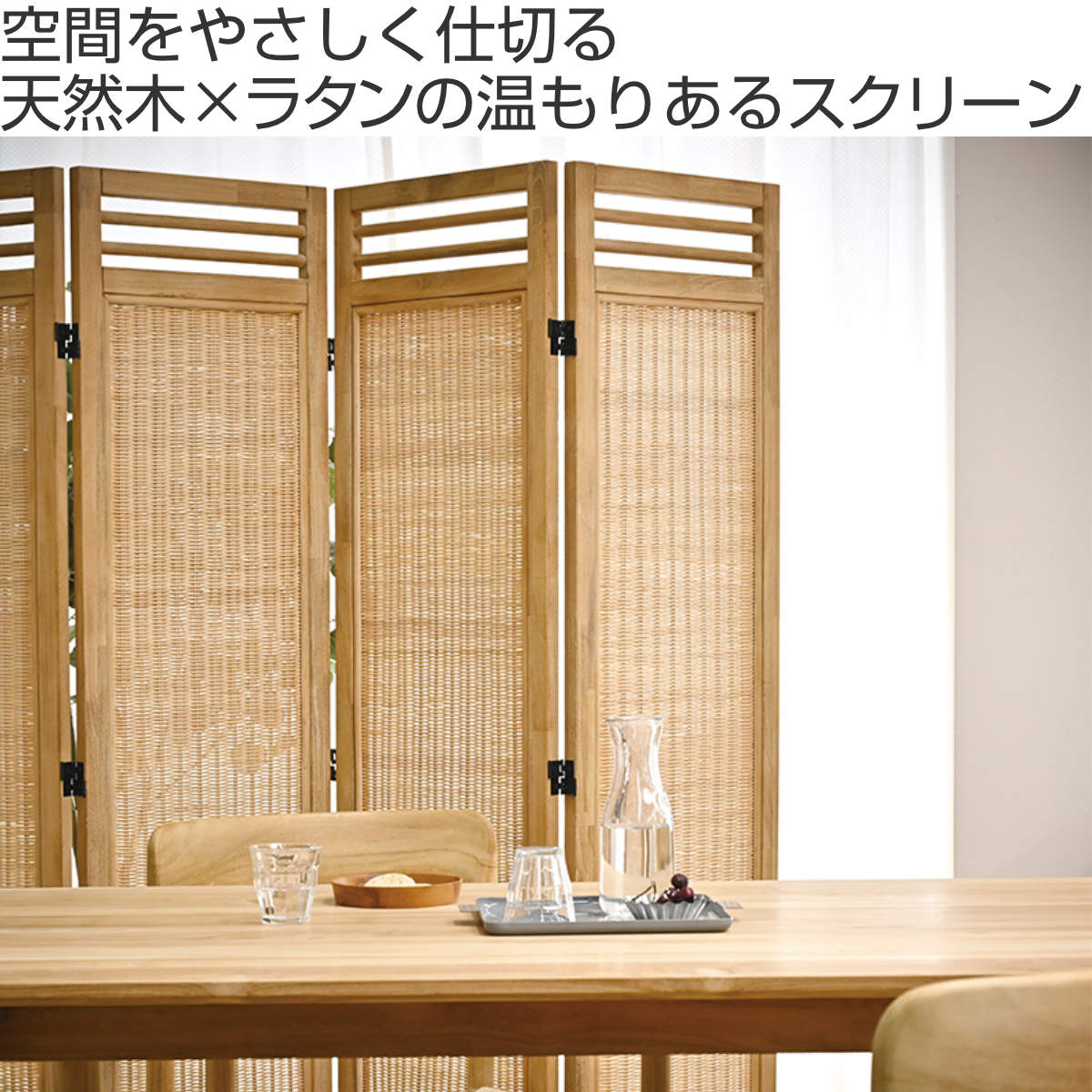 天然木×ラタンの4連パーテーション