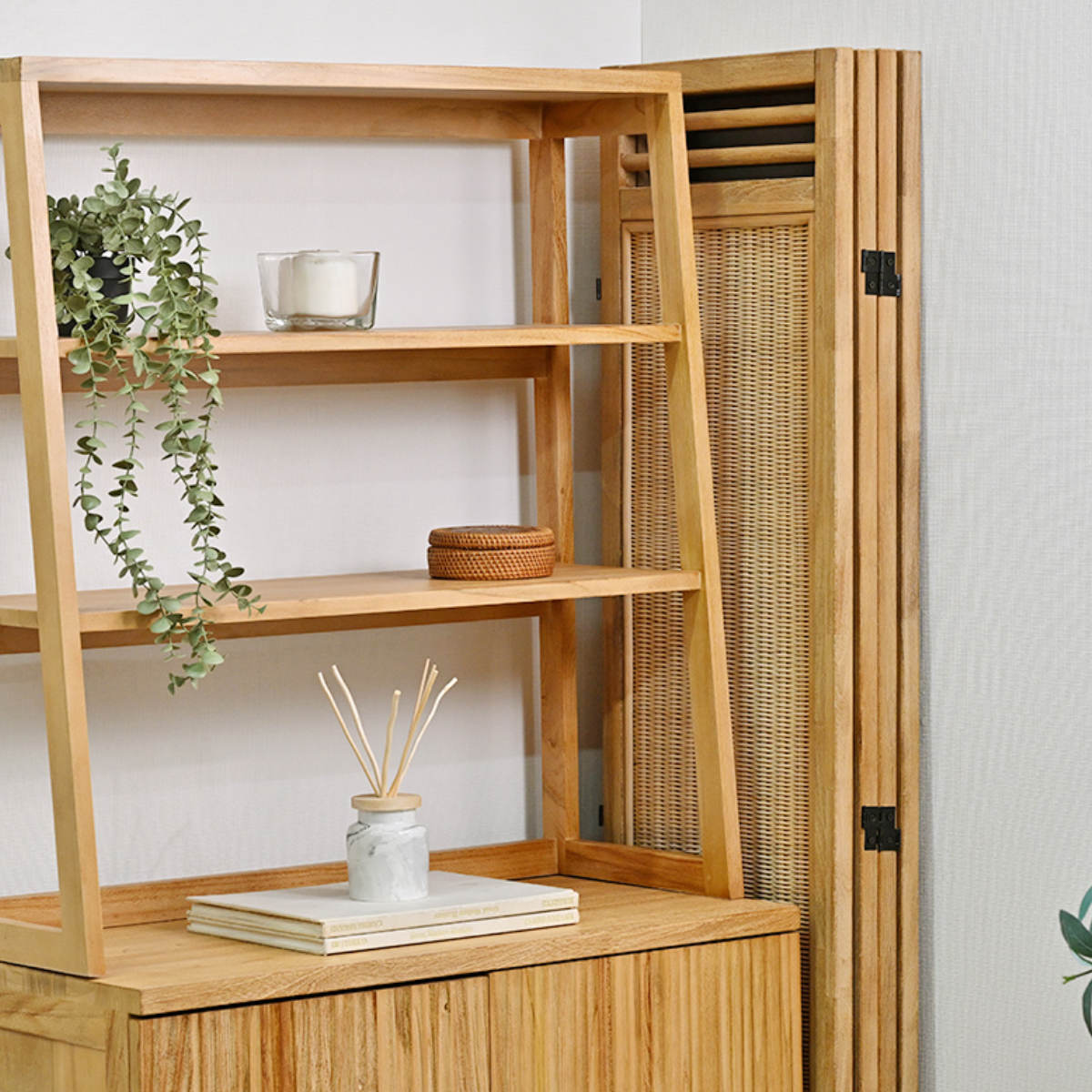 天然木×ラタンの抜け感パーテーション