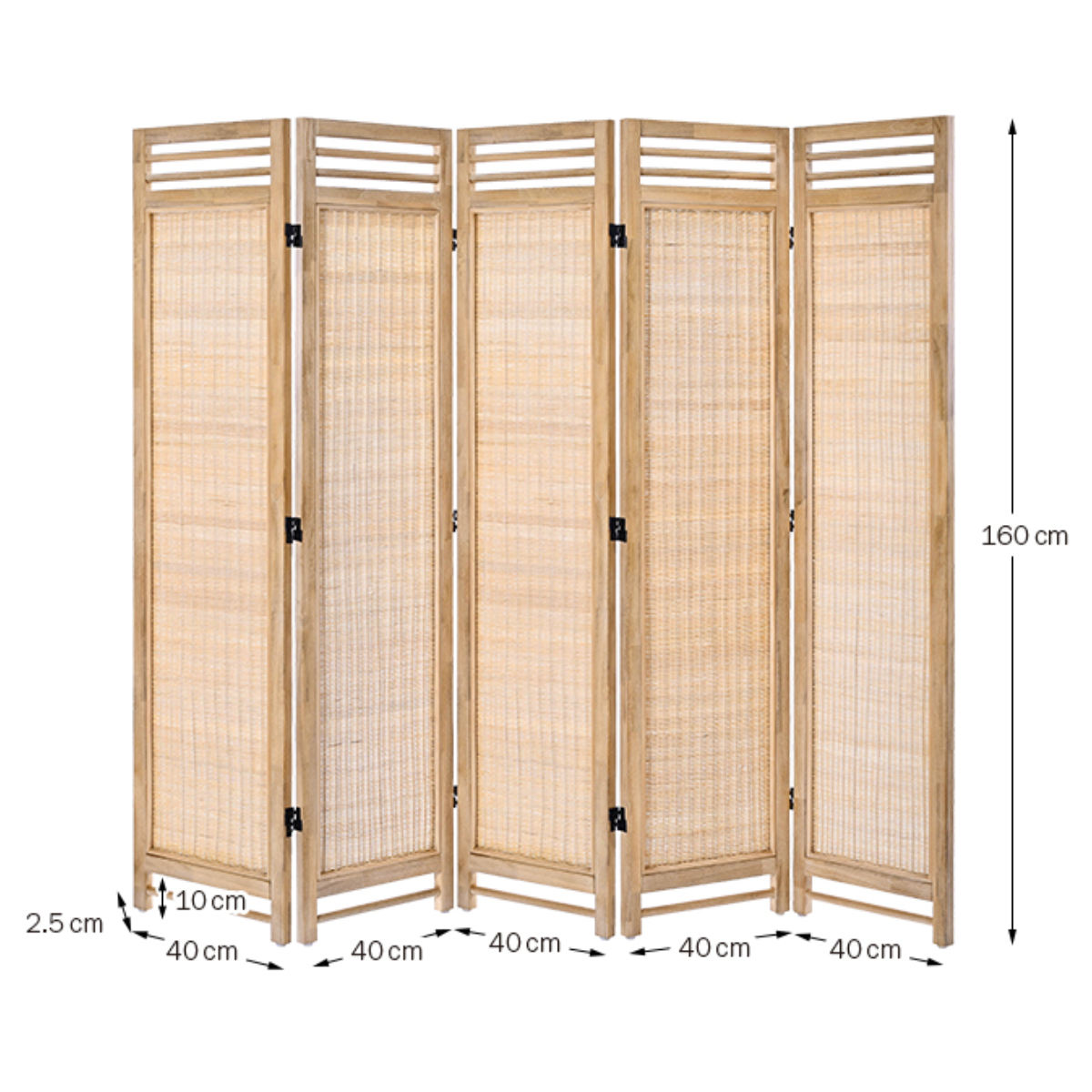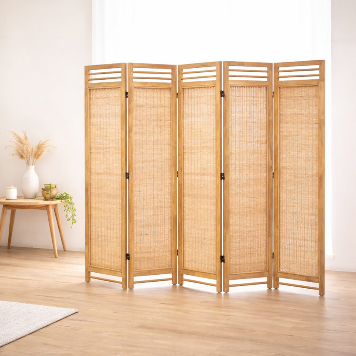天然木×ラタンの5連パーテーション