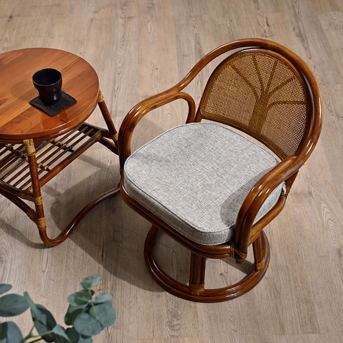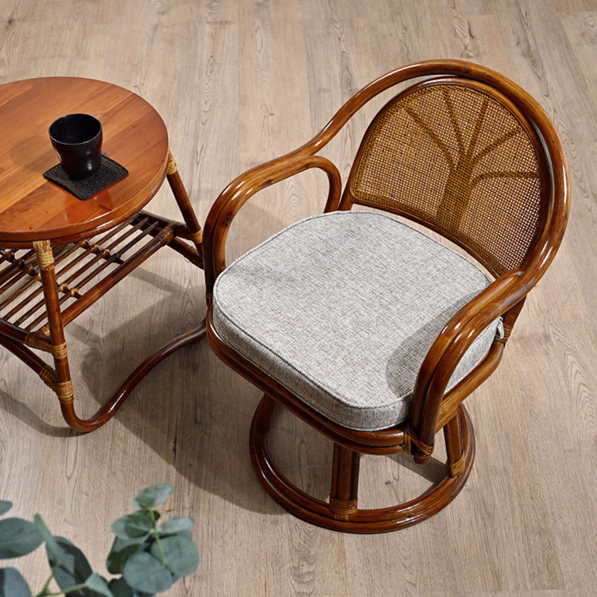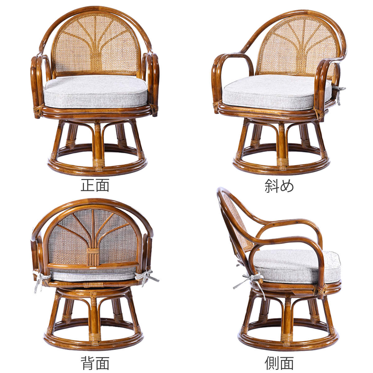 座面が360度回転するラタンチェア