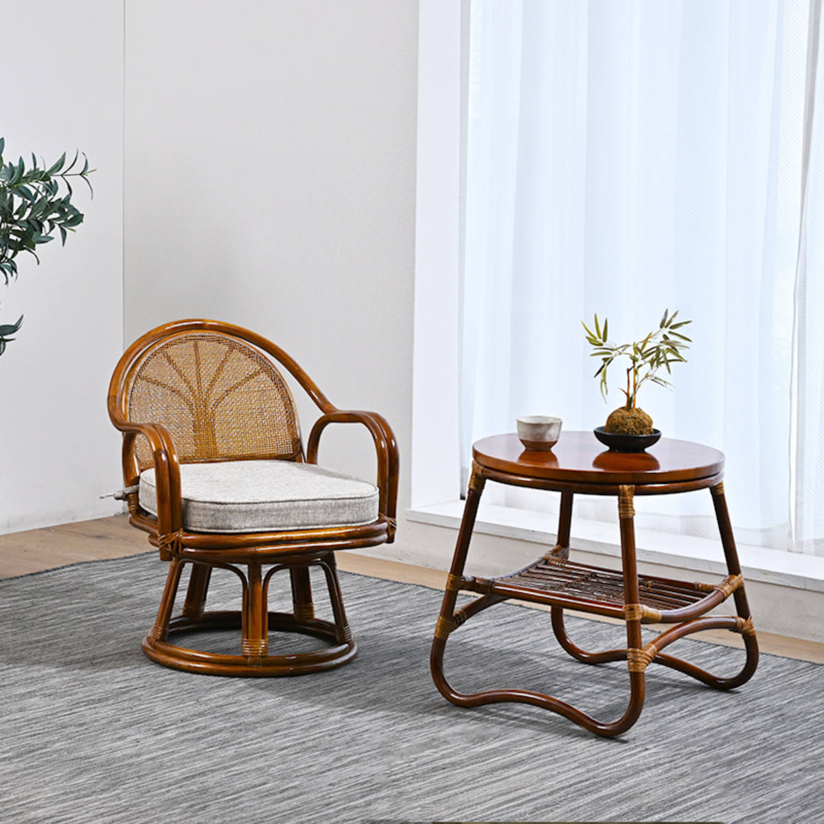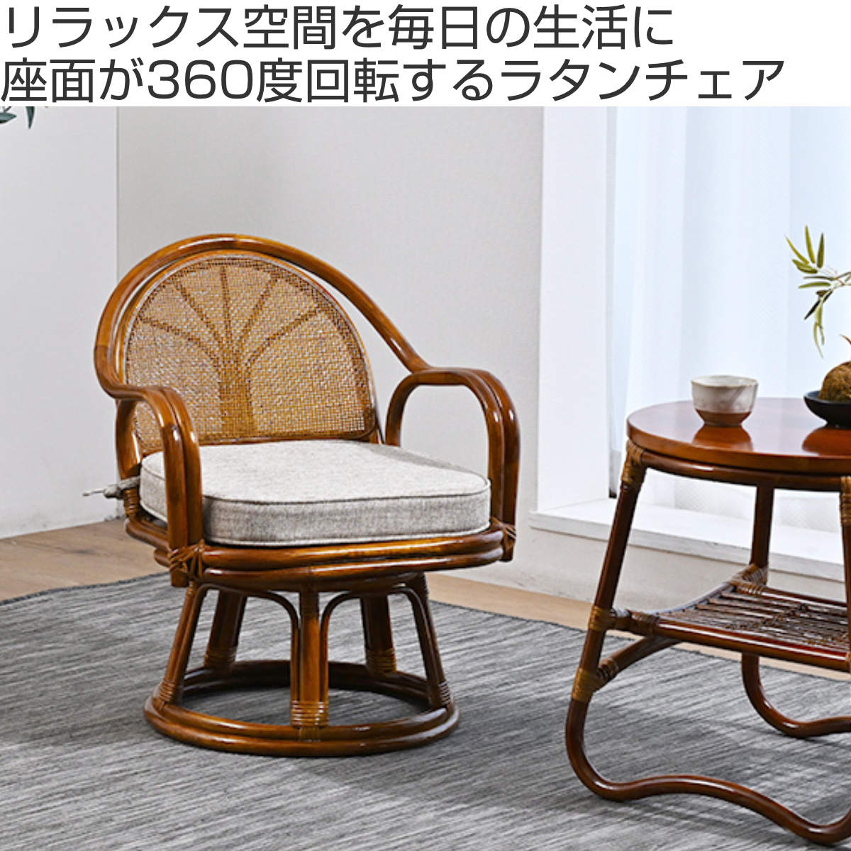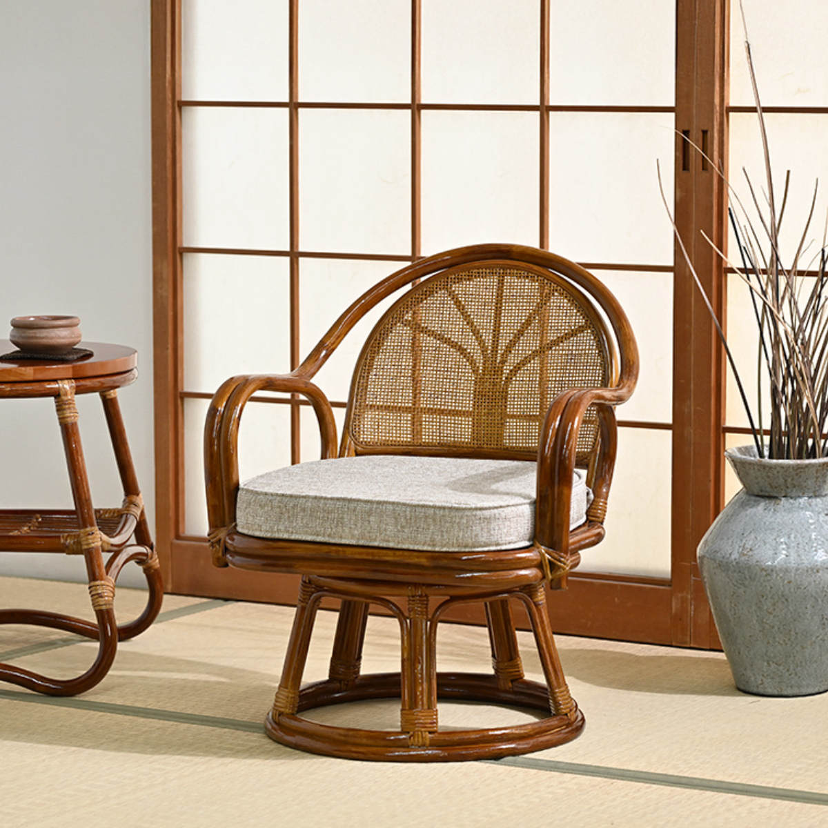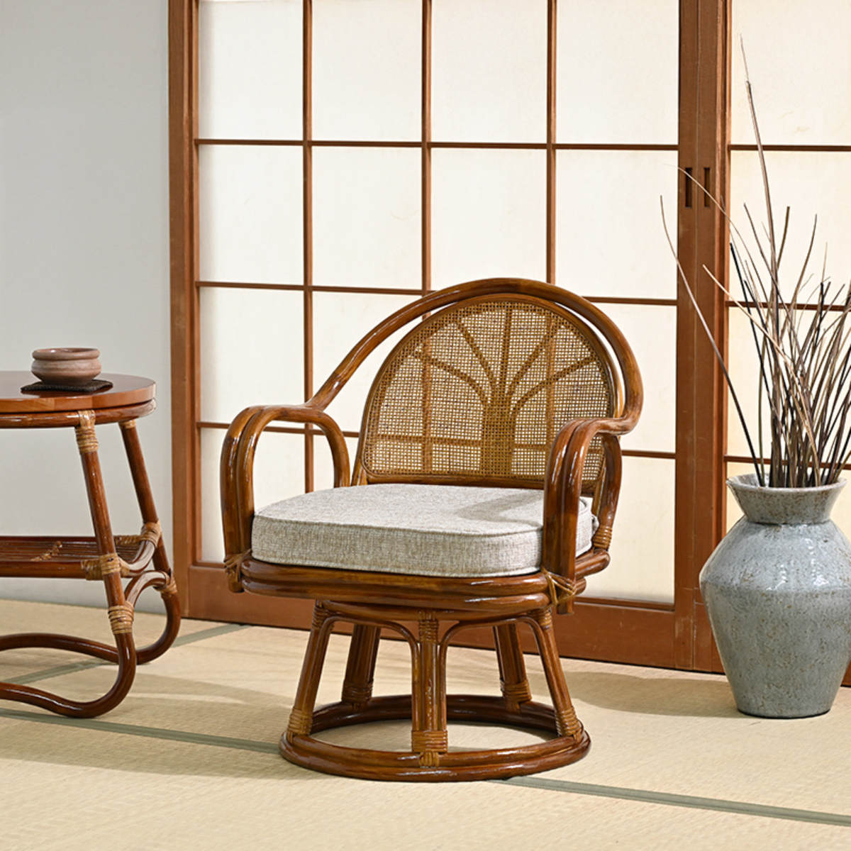 座面が360度回転するラタンチェア