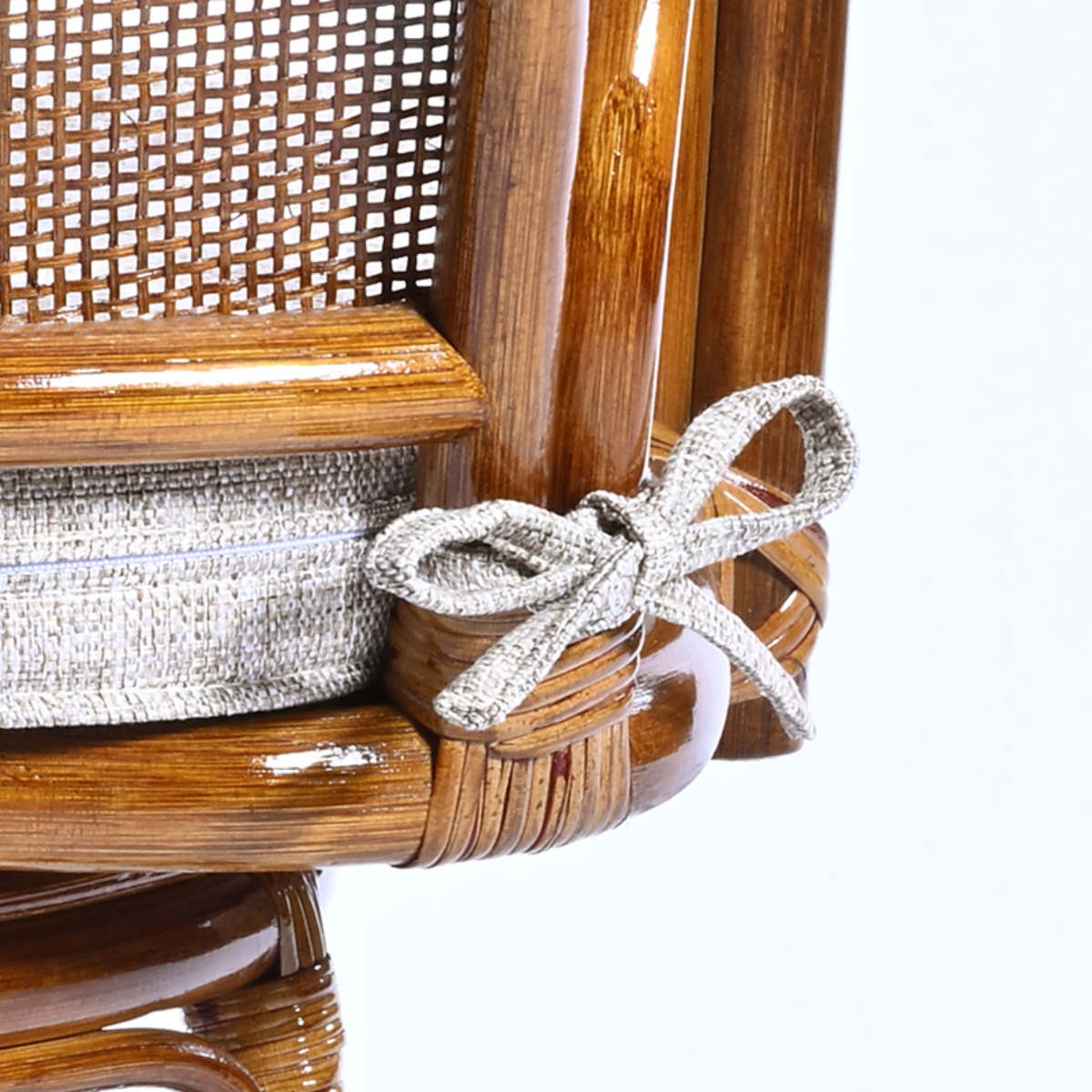 ゆるやかな曲線を描く2本のラタンのひじ掛けは、腕を自然に預けられる形状です。しっかりとした太さで握りやすく、立ち上がる際や座る際の動作をサポート。身体への負担を軽減し、快適にお使いいただけます。