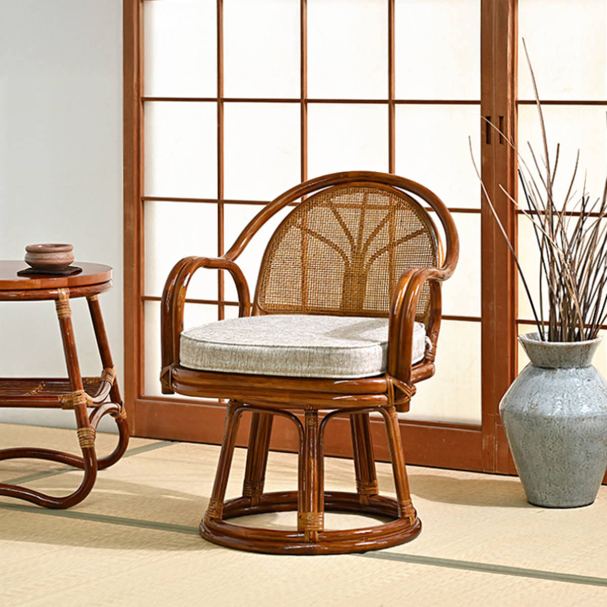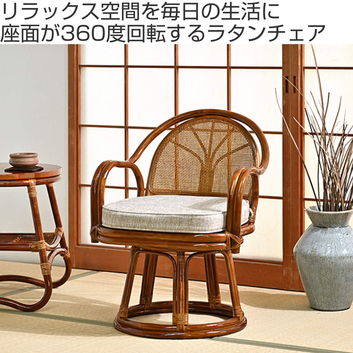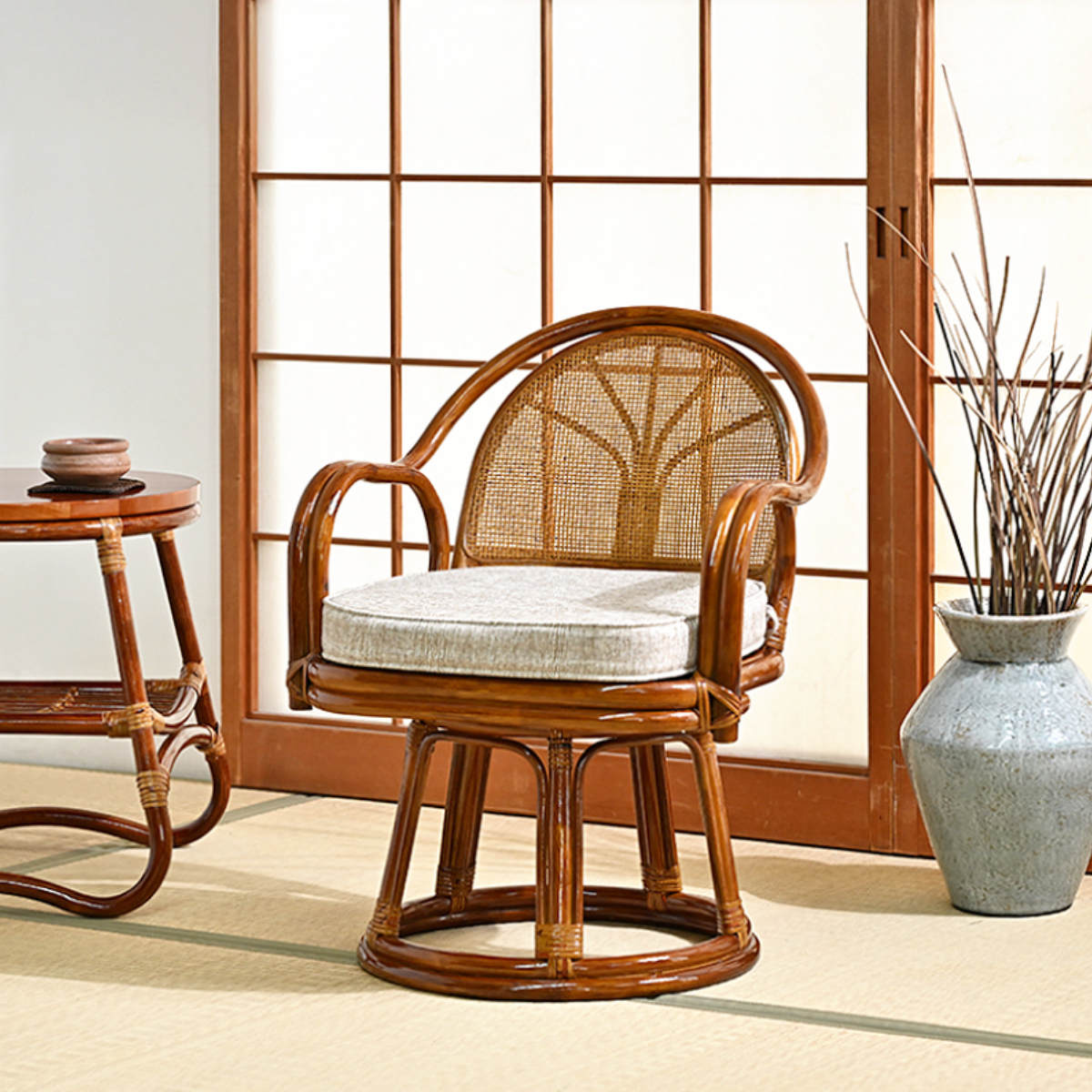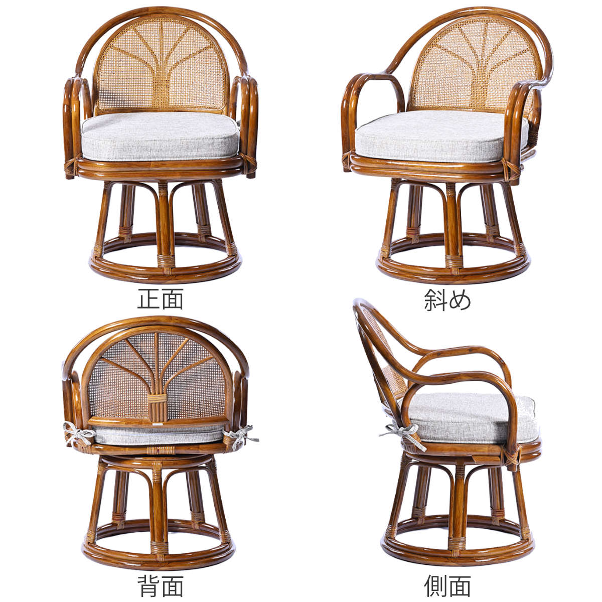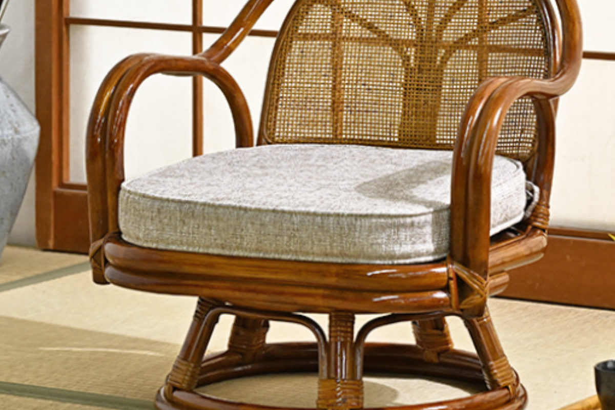 座面が360度回転するラタンチェア