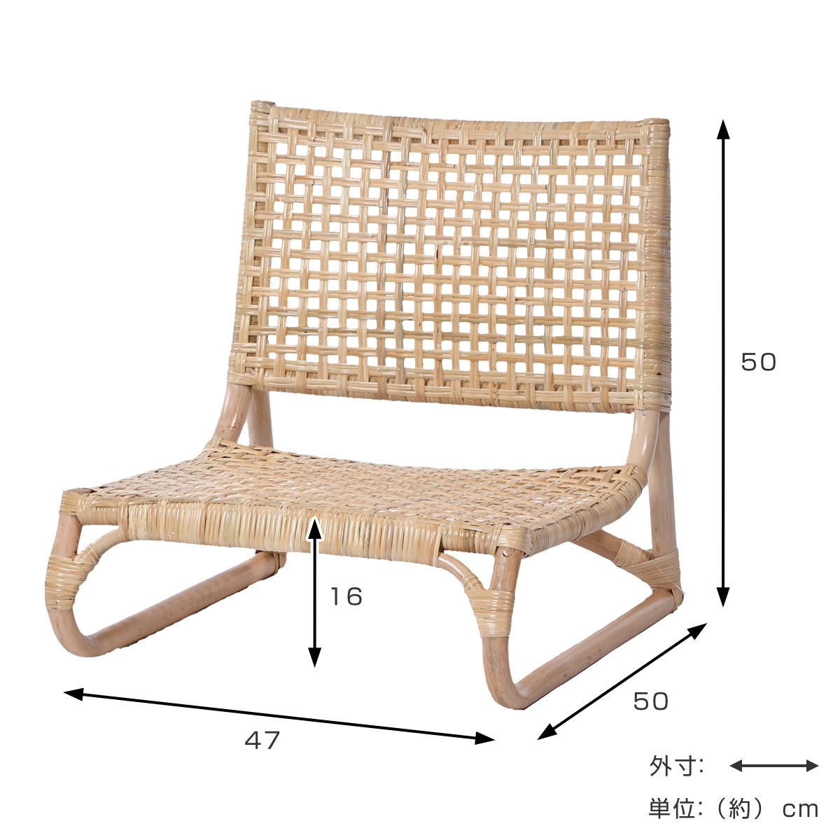 | サイズ | 約 幅47×奥行50×高さ50(cm) 座面高:約 16(cm) |