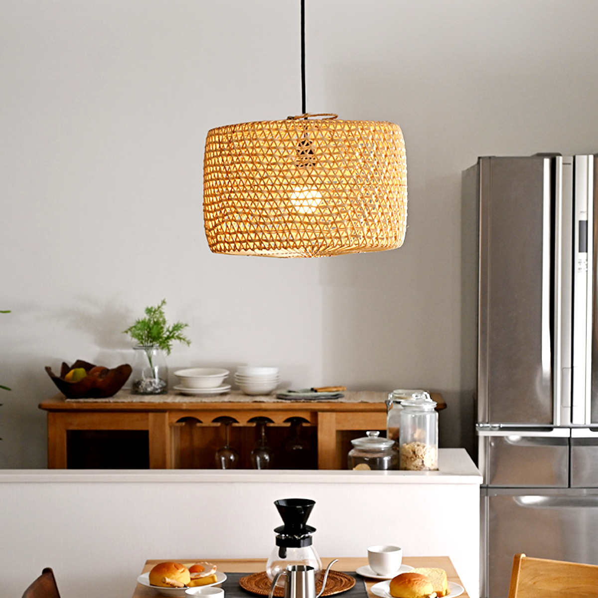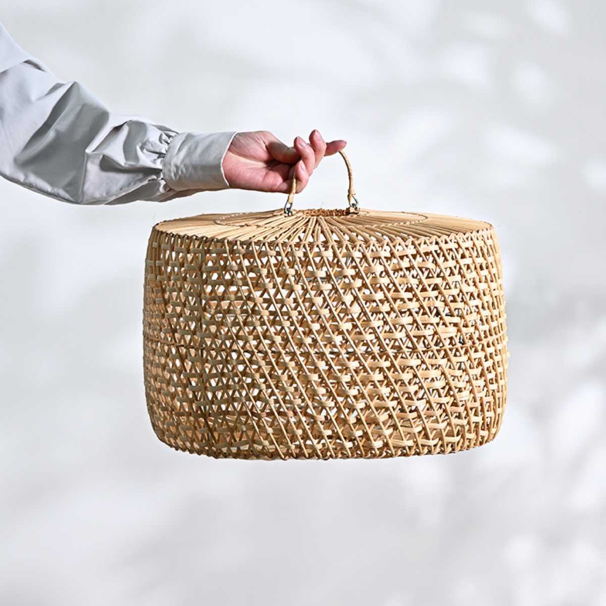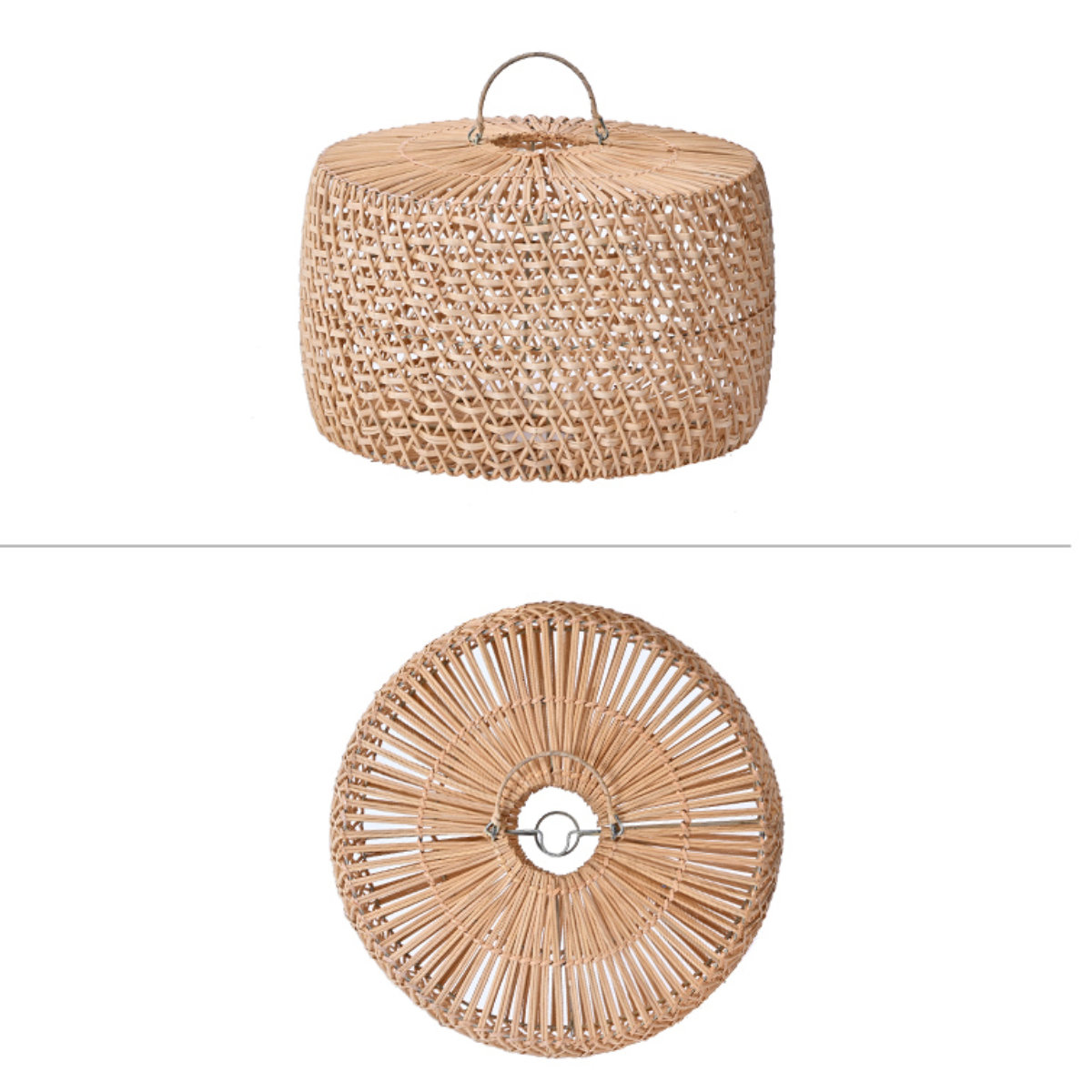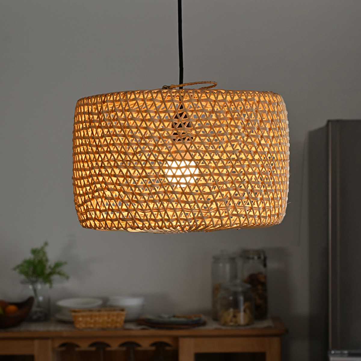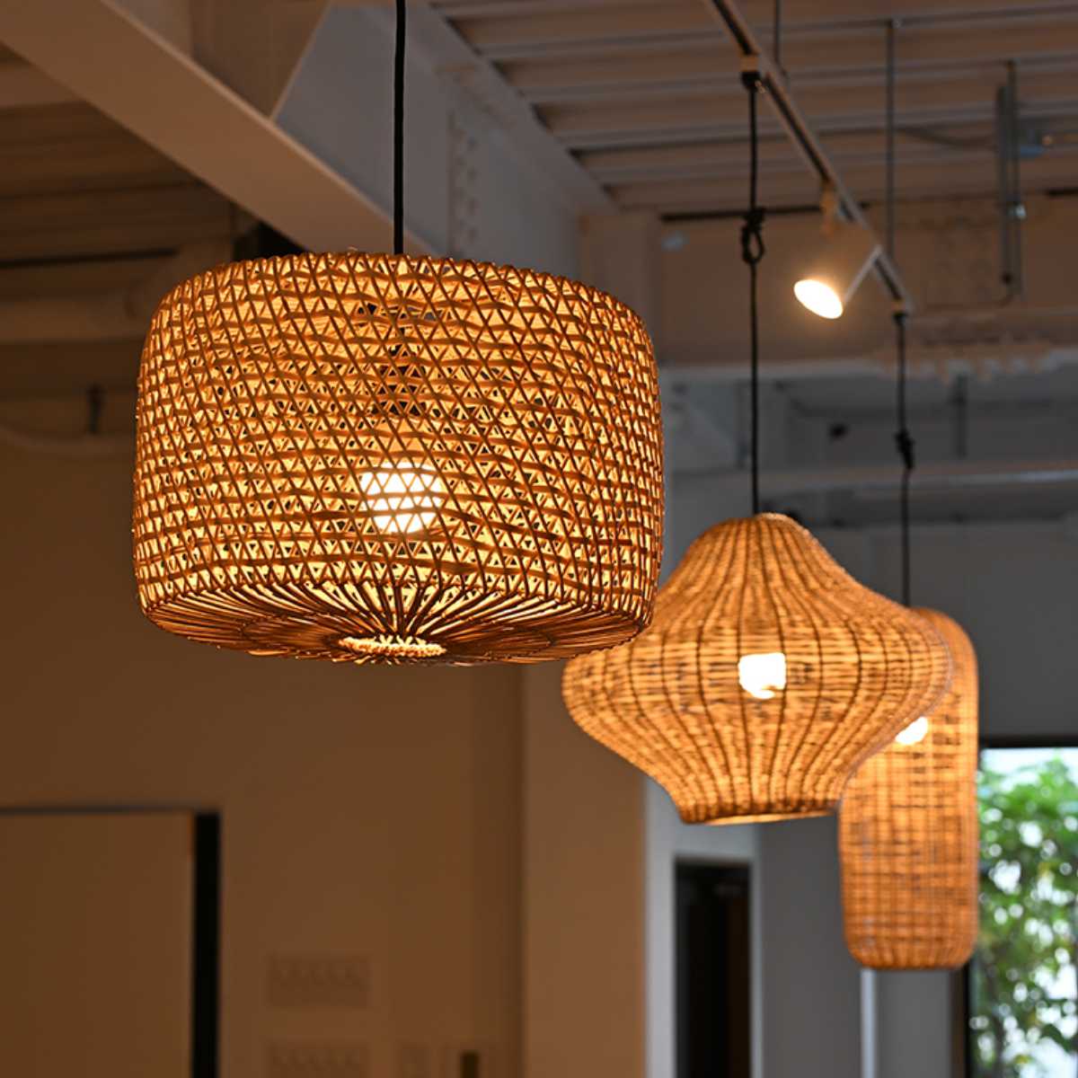 天然素材のラタンで作られた存在感あるランプシェードです。編み目からこぼれる光が、お部屋にやさしい陰影を生み出し、カフェのような落ち着いた空間を演出します。ダイニング・リビング・店舗照明など、空間のアクセントとしておすすめです。