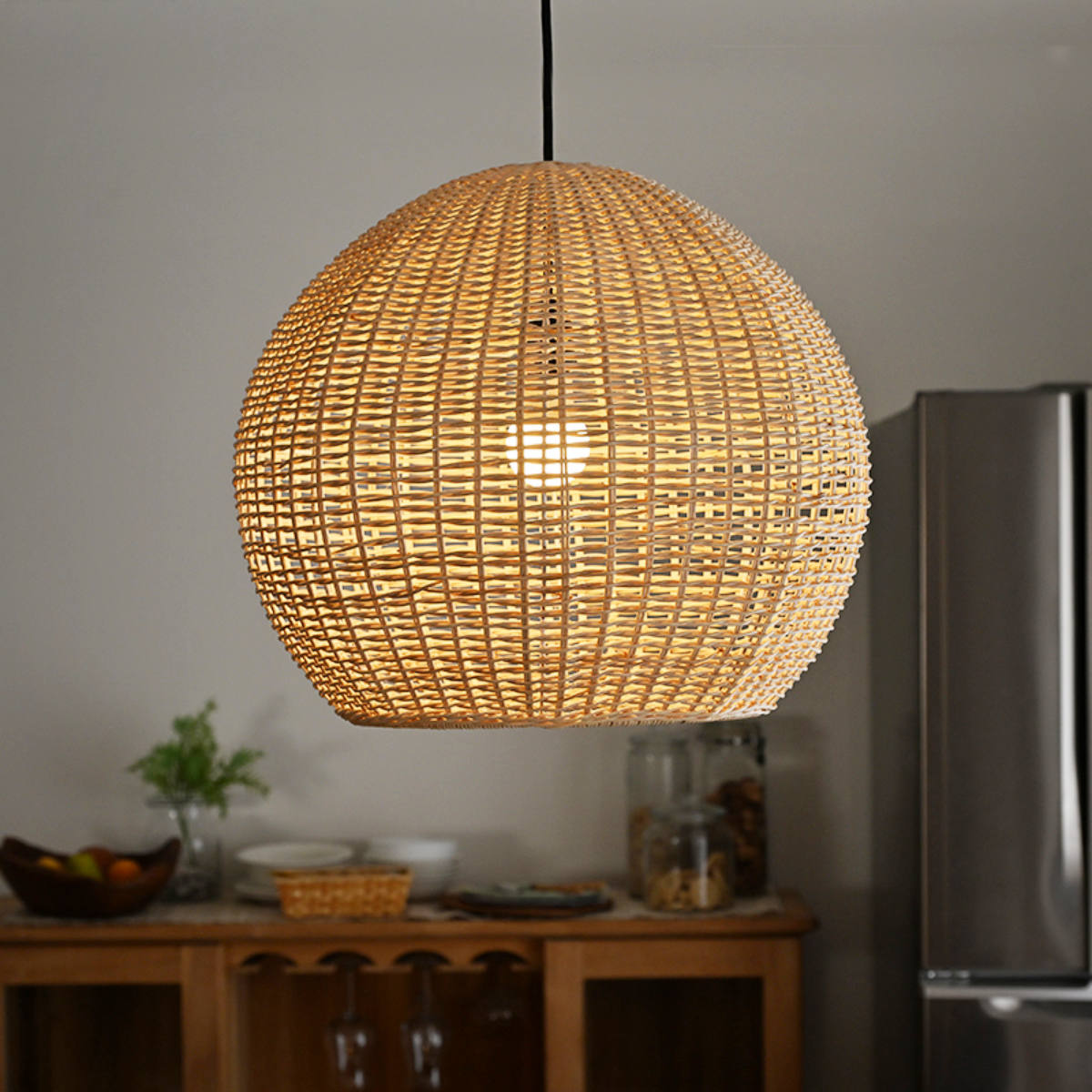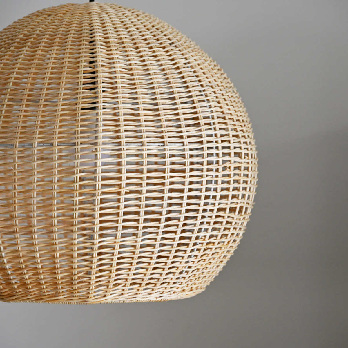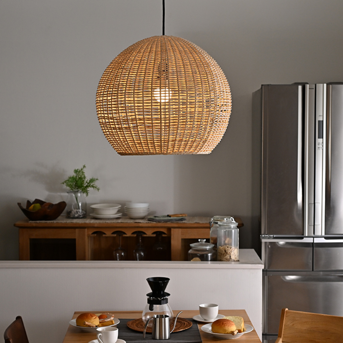 天然素材のラタンで作られた存在感あるランプシェードです。編み目からこぼれる光が、お部屋にやさしい陰影を生み出し、カフェのような落ち着いた空間を演出します。ダイニング・リビング・店舗照明など、空間のアクセントとしておすすめです。