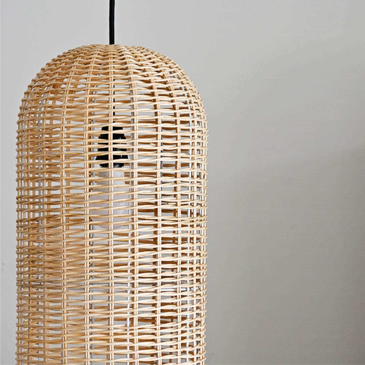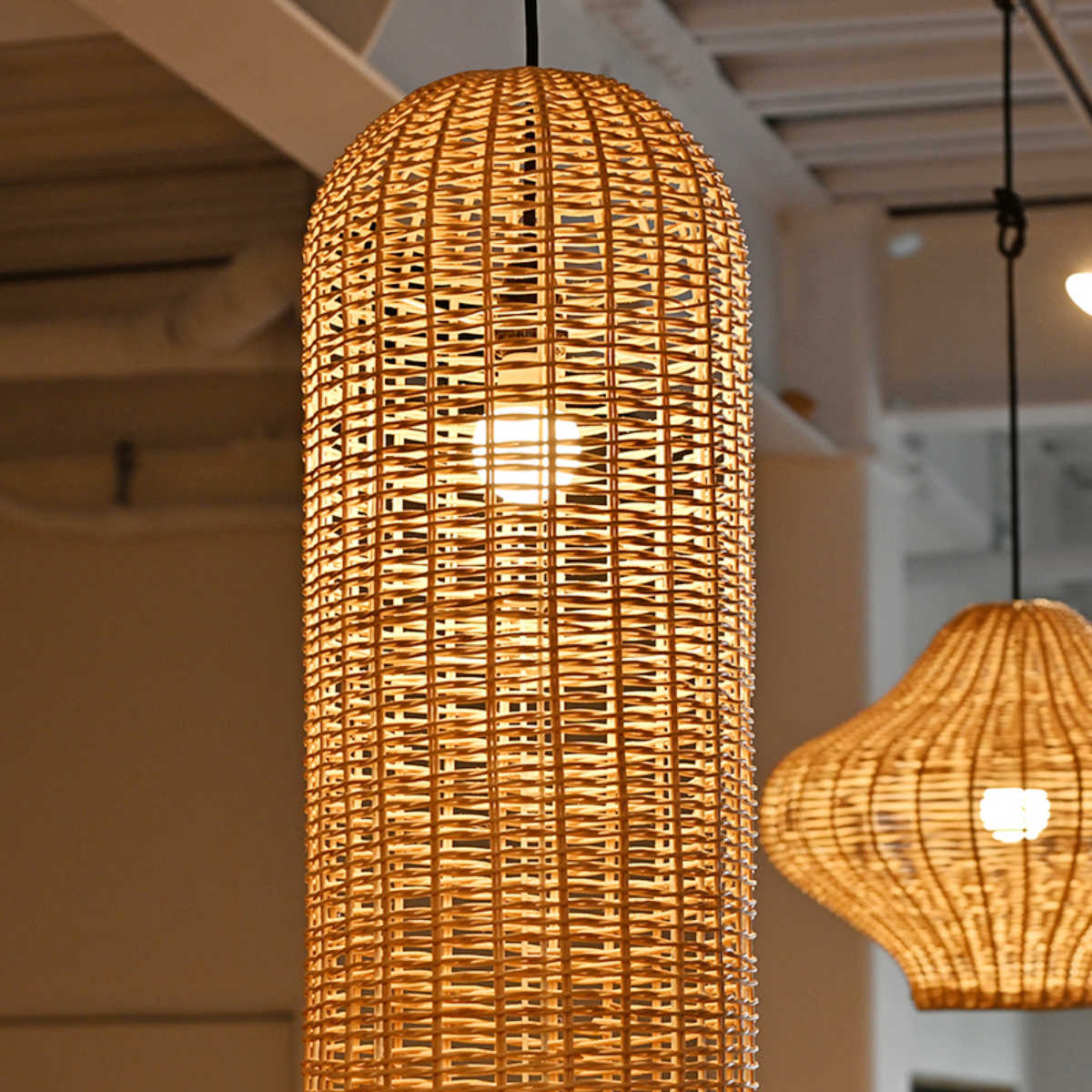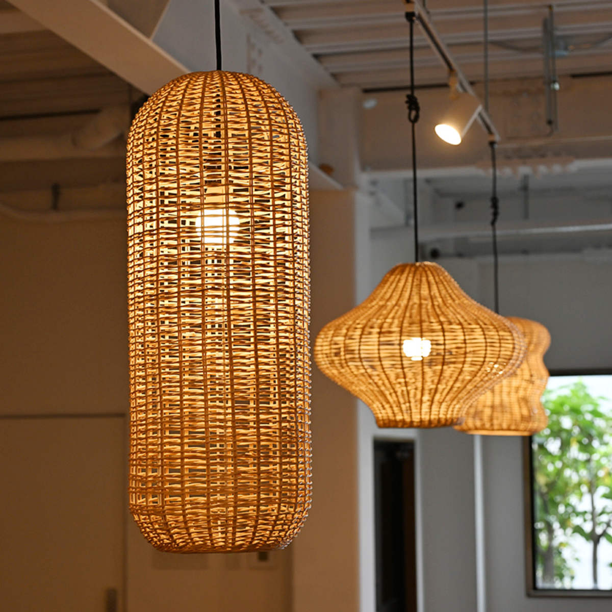 天然素材のラタンで作られた存在感あるランプシェードです。編み目からこぼれる光が、お部屋にやさしい陰影を生み出し、カフェのような落ち着いた空間を演出します。ダイニング・リビング・店舗照明など、空間のアクセントとしておすすめです。