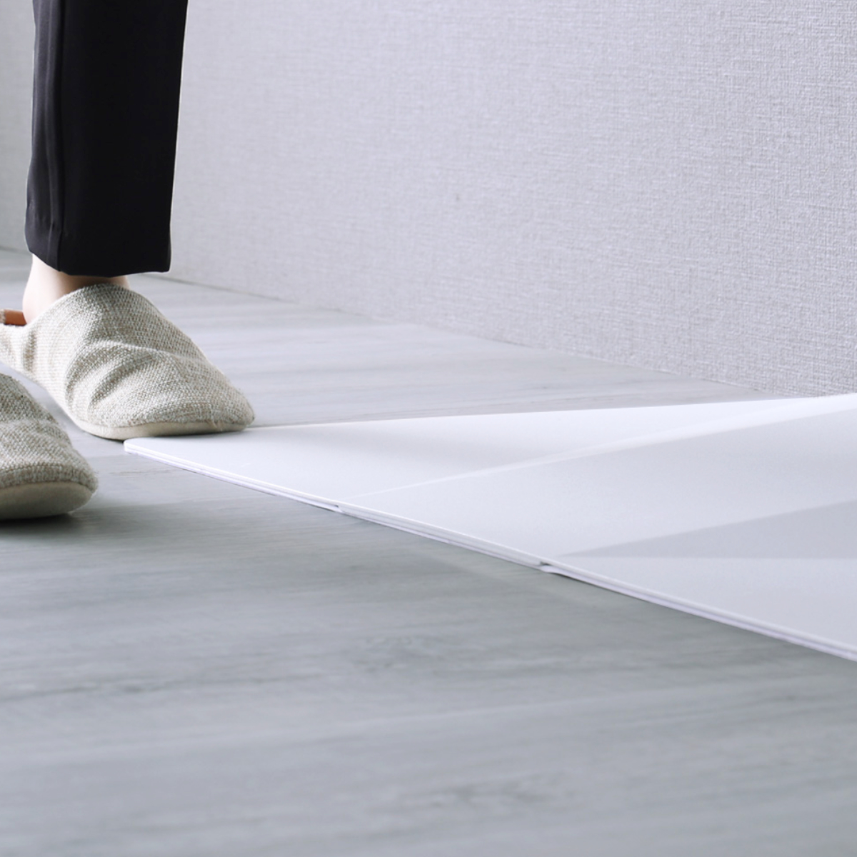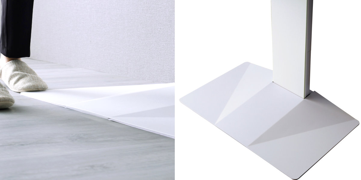 五面体構造のスタイリッシュなフォルムで、空間をすっきり演出。厚さ2mmのスチール製ベースがテレビをしっかり支えます。薄型設計で段差が少なく、つまずきにくい安心仕様です。