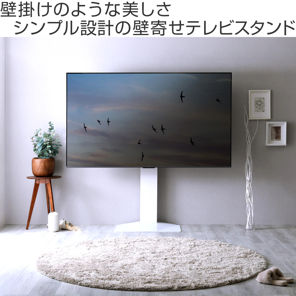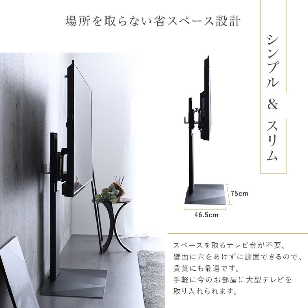 壁掛けのような美しさ、シンプル設計のテレビスタンド