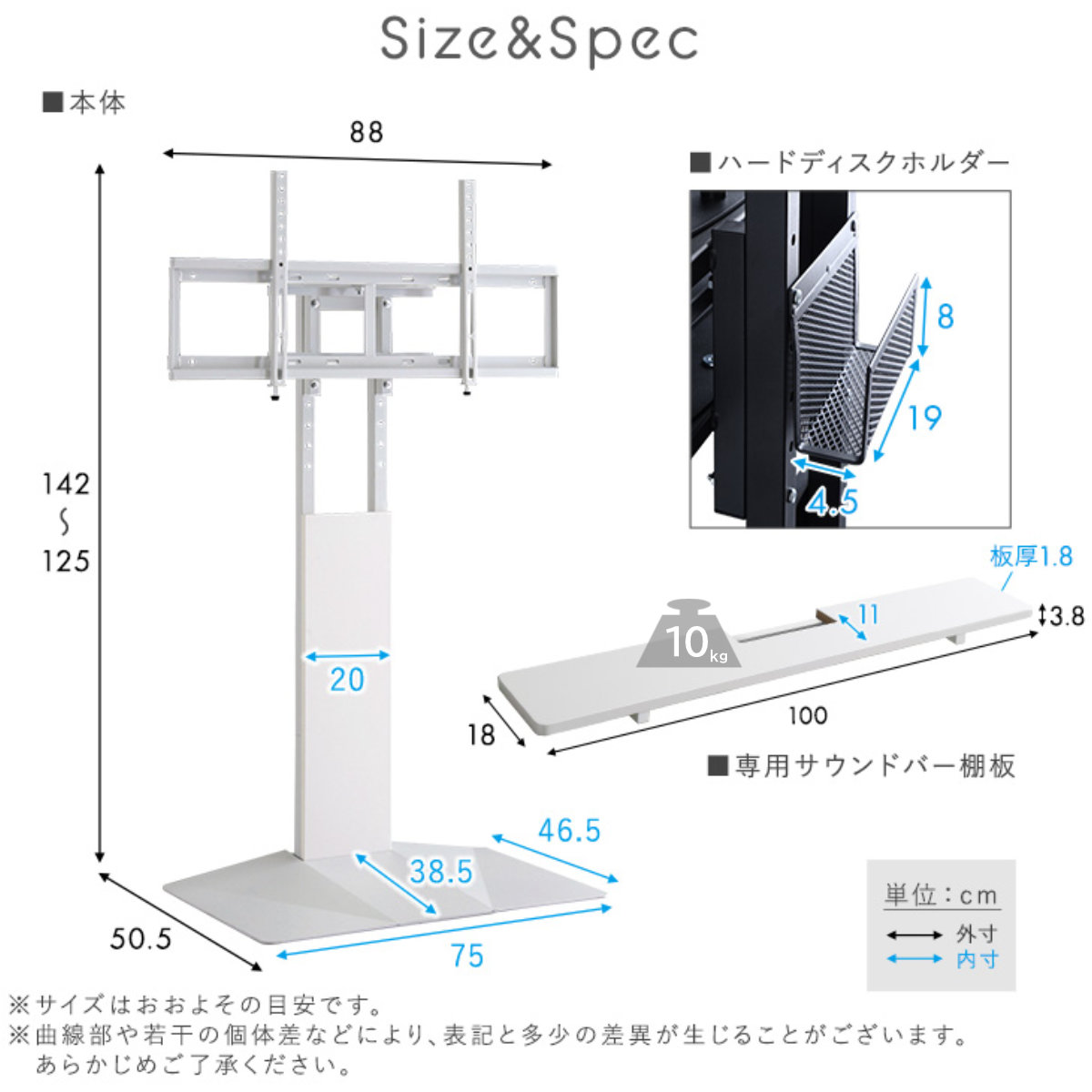 | 材質 | テレビスタンド:スチール サウンドバー:MDF |