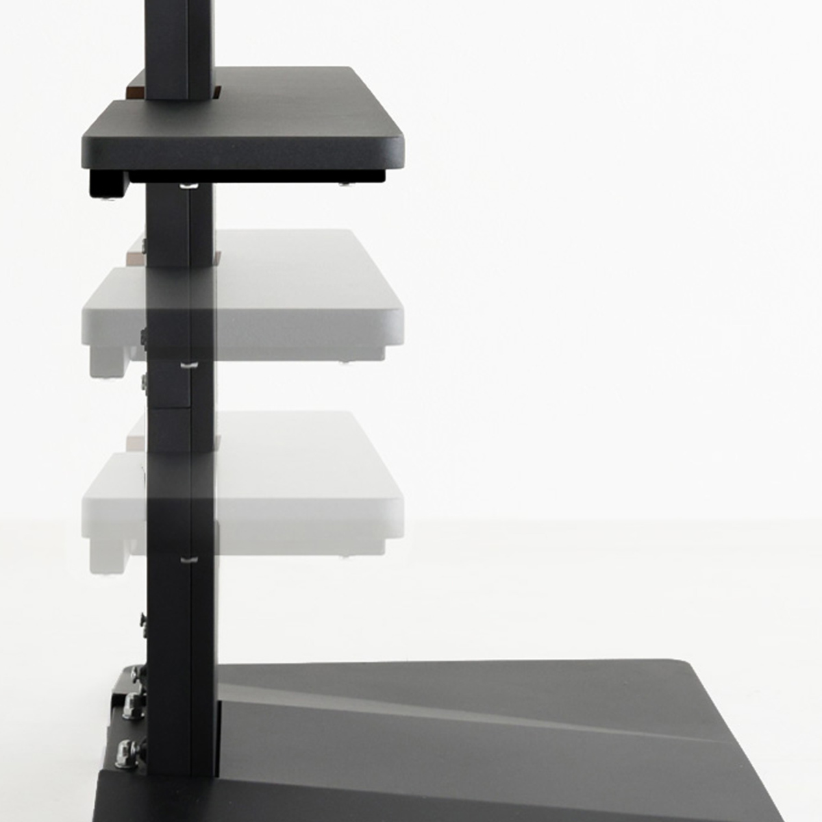 五面体構造のスタイリッシュなフォルムで、空間をすっきり演出。厚さ2mmのスチール製ベースがテレビをしっかり支えます。薄型設計で段差が少なく、つまずきにくい安心仕様です。
