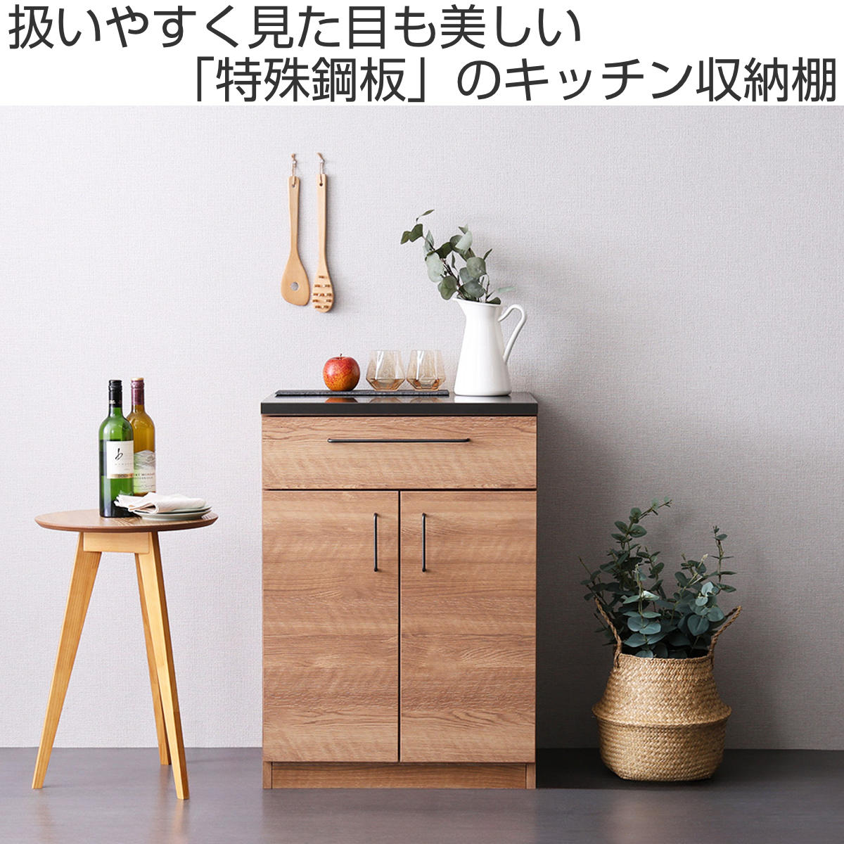 天板に機能性抜群の「特殊鋼板」使用、キッチン収納棚