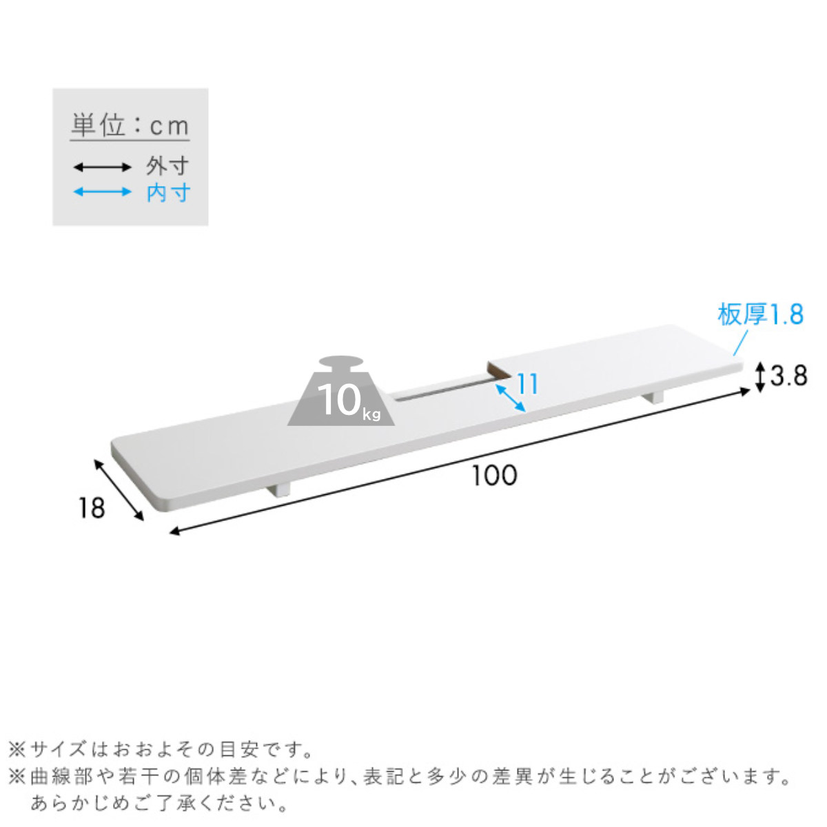 | サイズ | 約 幅100×奥行18×高さ3.8(cm) |