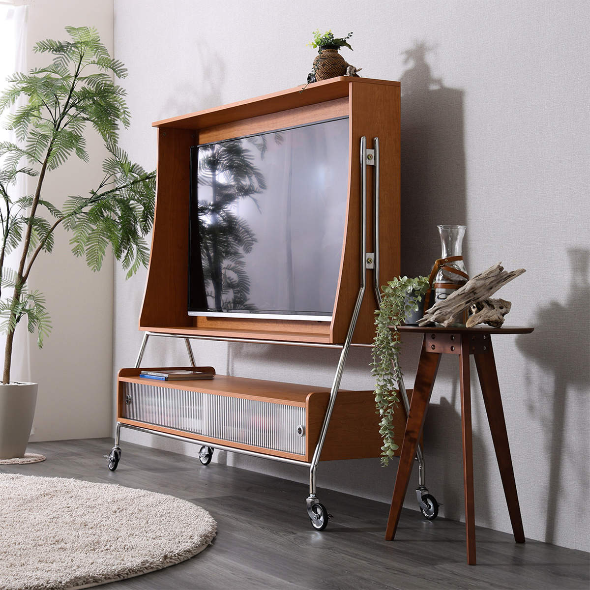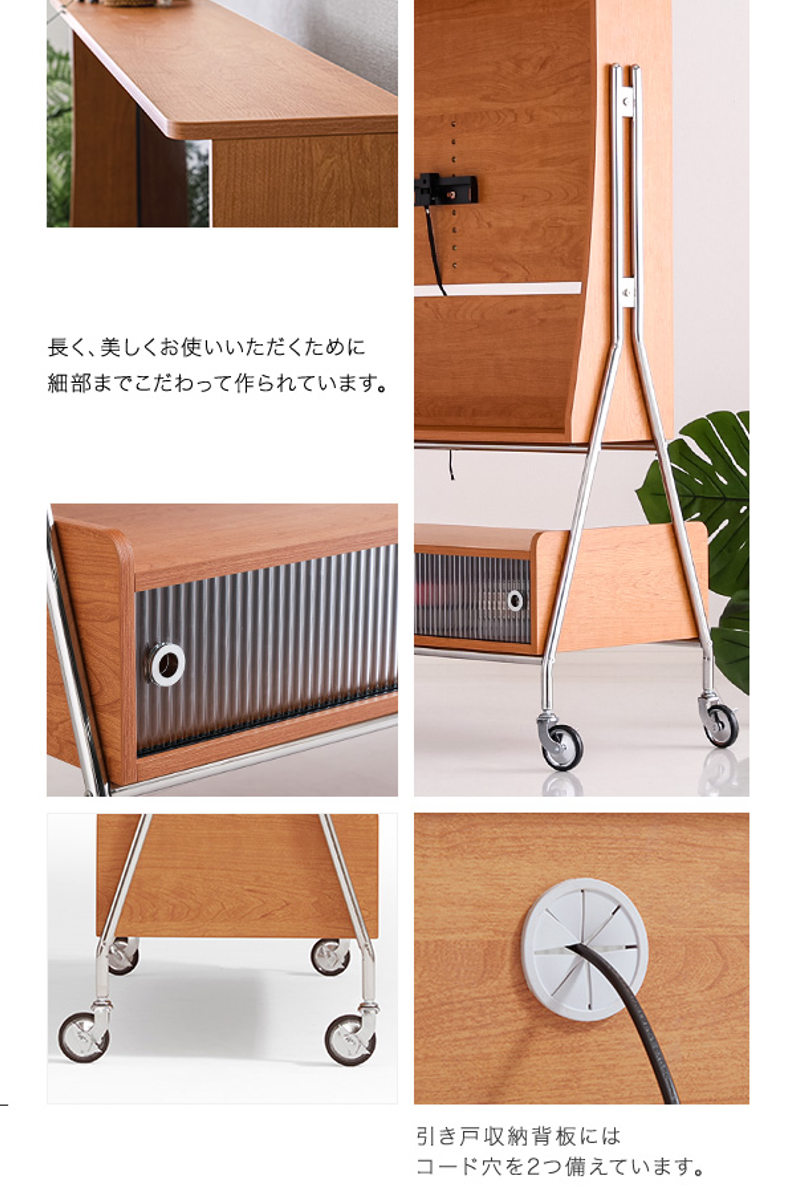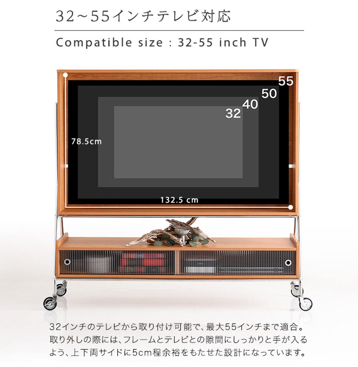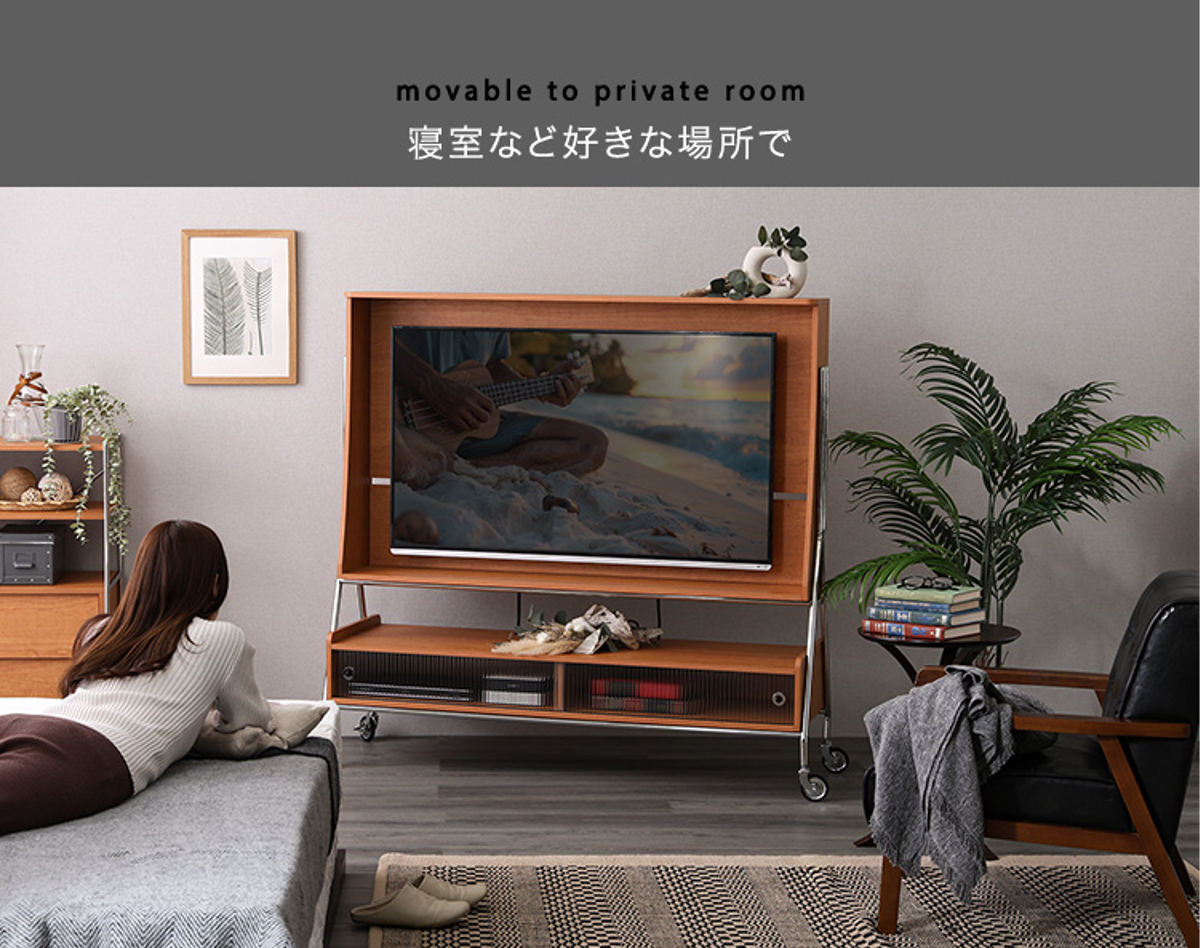 おしゃれに壁掛け風に取り付けられ、賃貸のご家庭でも手軽にお使いいただけます。また、キャスター付きなのでライフスタイルに合わせてテレビを好きな場所へ移動することも簡単です。