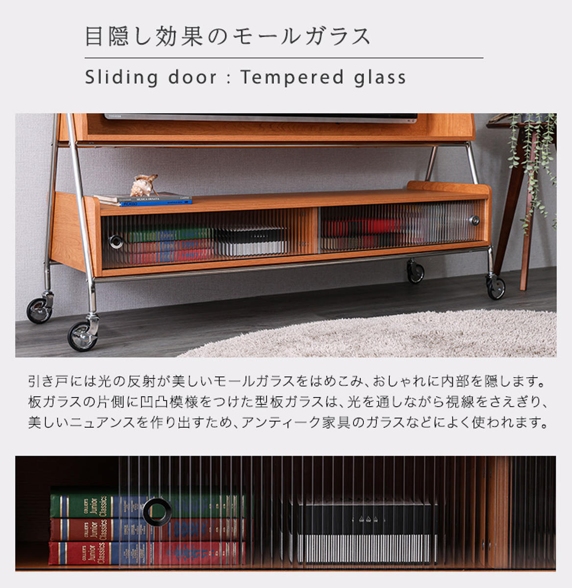 キャスター付きで、テレビを載せたままスムーズに移動できます。模様替えや掃除の際も手軽に動かせるので、レイアウト変更や配線の見直しもストレスなく行えます。