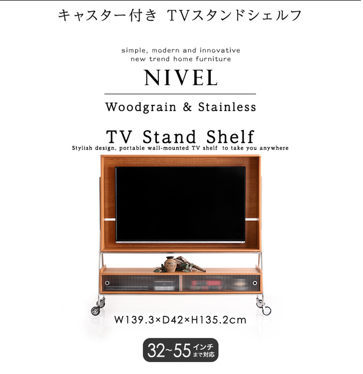 ステンレスとナチュラルな木目柄を組み合わせたスタイリッシュなデザインのテレビスタンドです。