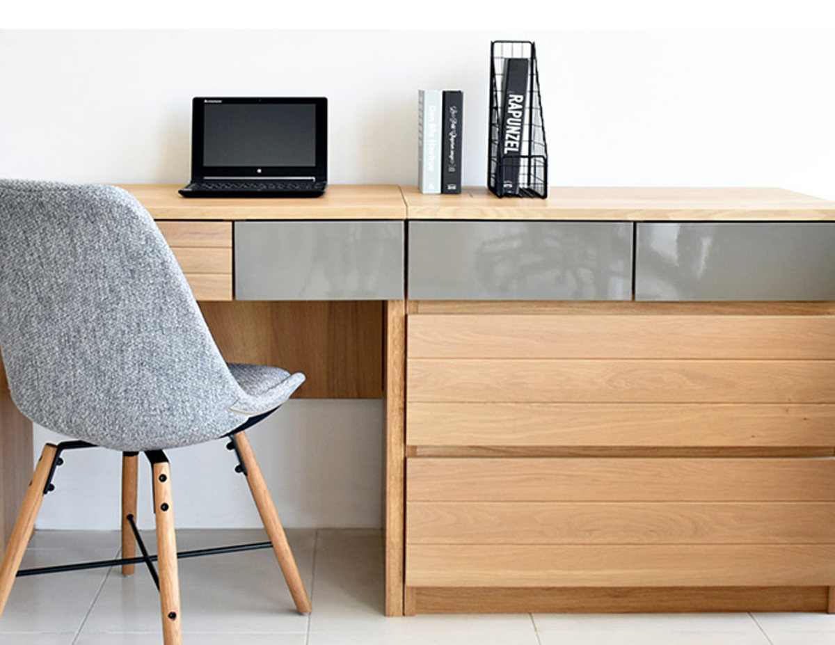 | 材質 | 天板:強化紙 前板:オーク無垢材、MDF(エナメル塗料) 本体:プリント紙 |