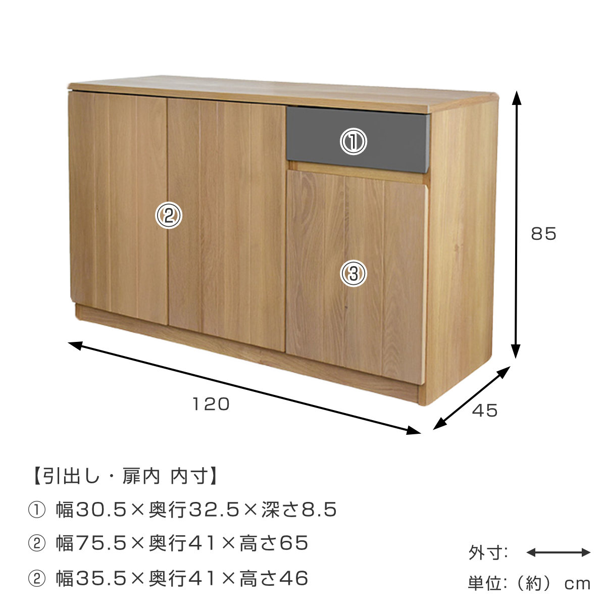 - 約幅120×奥行45×高さ75cm