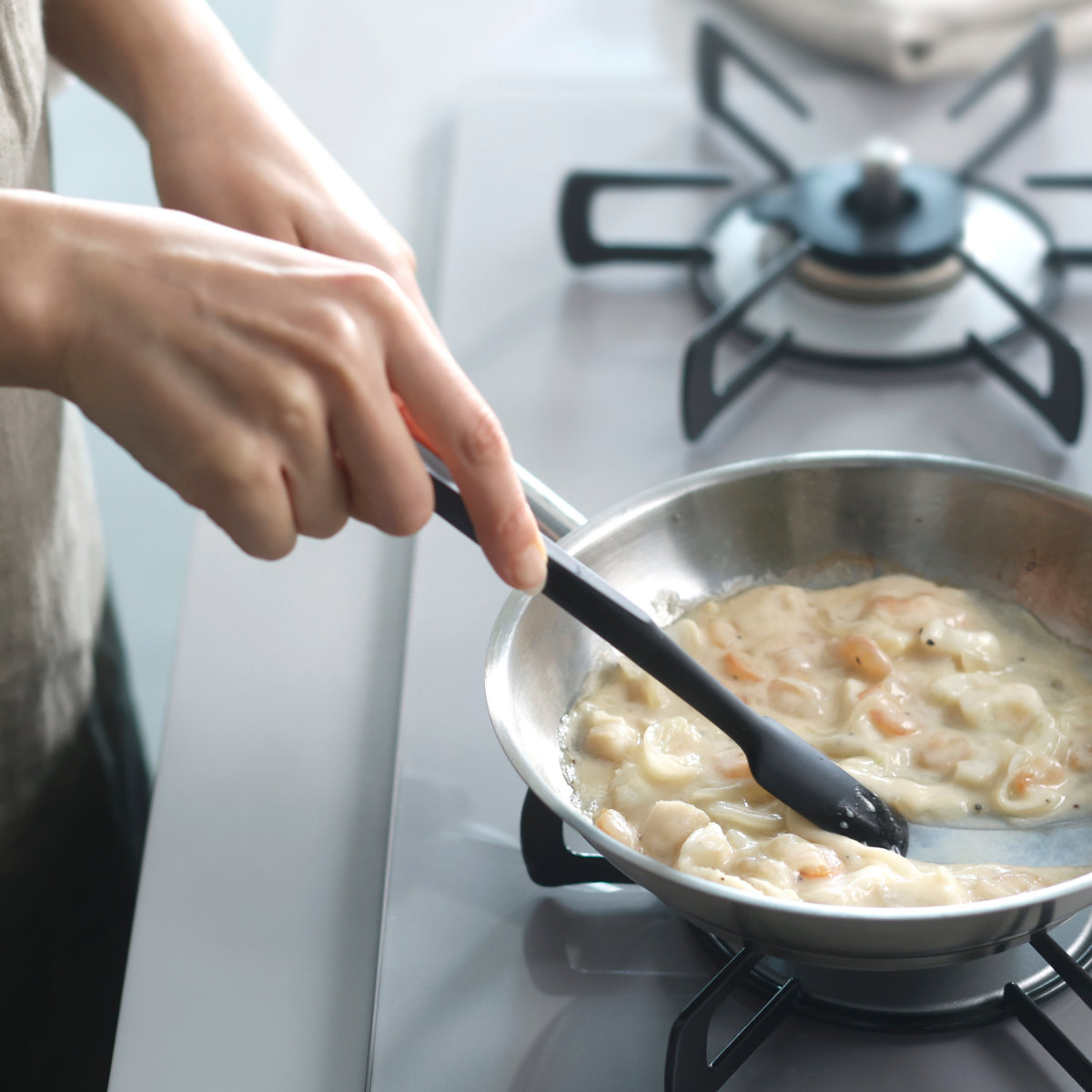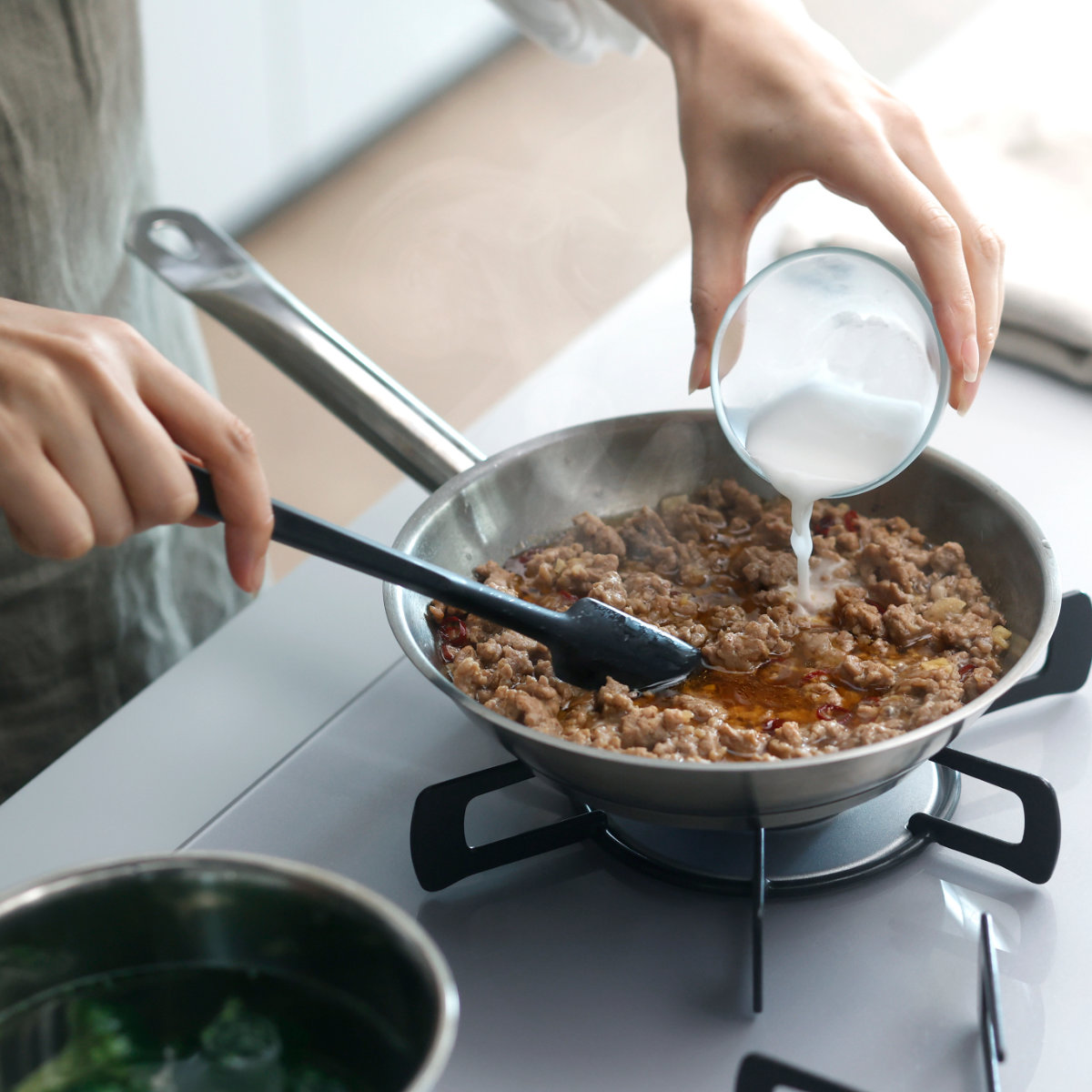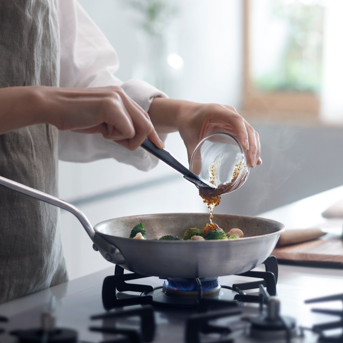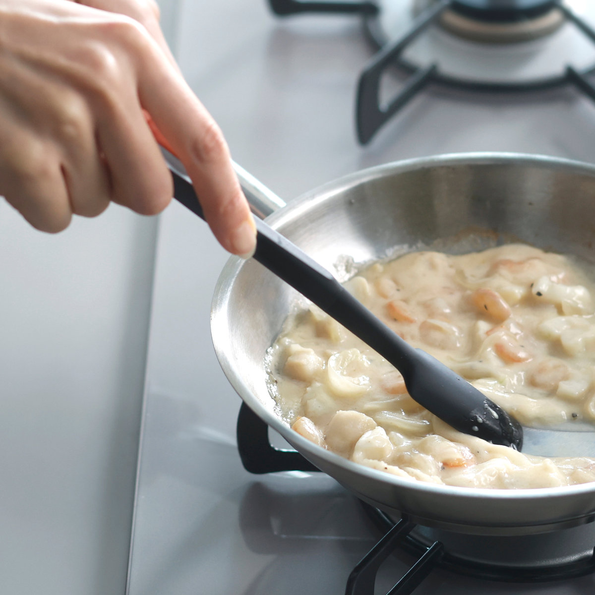 フライパンや鍋に調味料を加えたあと、そのまま炒めたり混ぜたりできるので、調理の手間をぐっと減らせます。耐熱性と柔軟性を兼ね備え、炒め物・ソース・ジャム作りなど幅広い調理に活躍します。