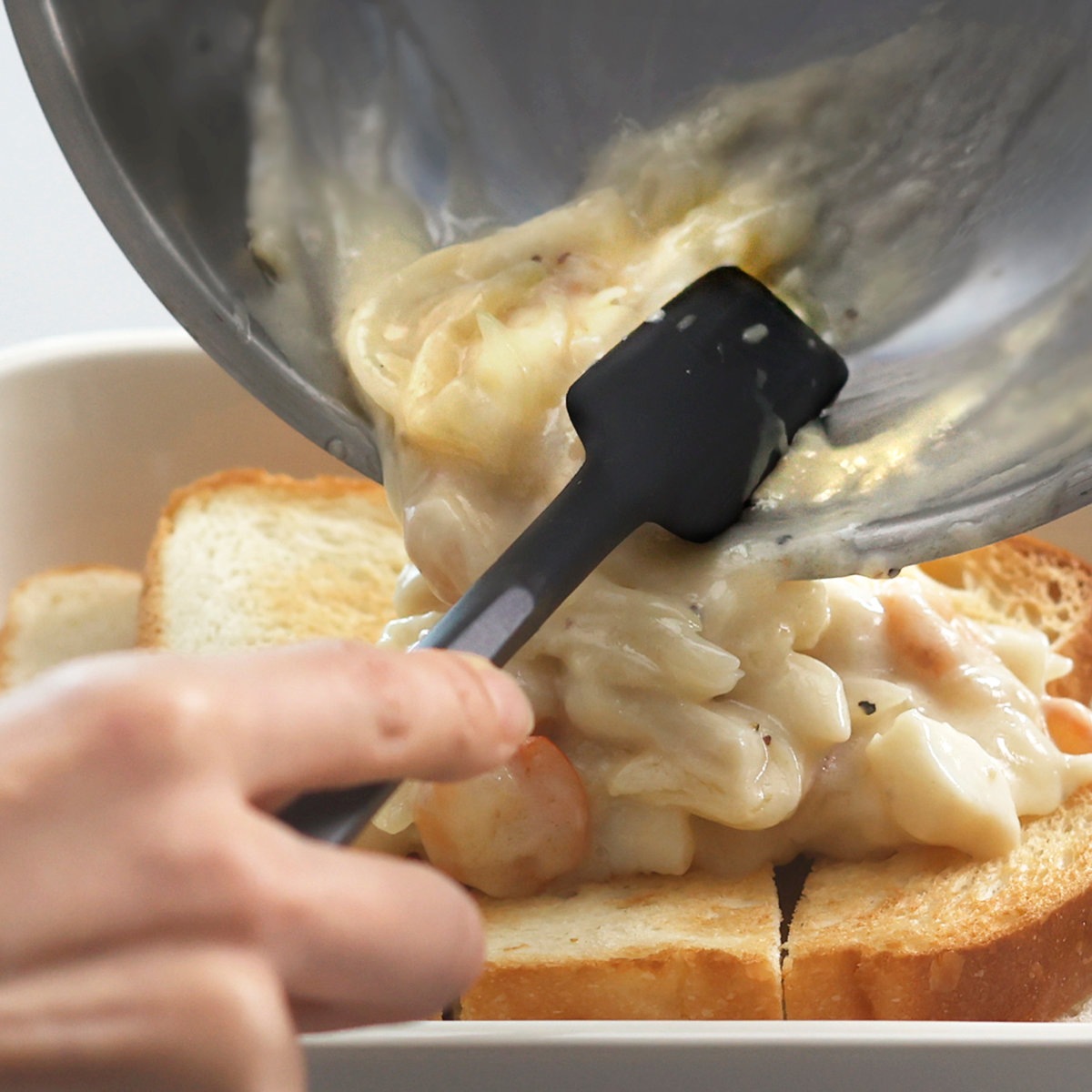 先端部分はほどよい柔軟性があり、フライパンや鍋の底や角にしっかりフィット。食材を無理なくかき集めながら、最後のひとすくいまで残さずきれいに取り出せます。しなり具合が絶妙なので、炒め物やソースの混ぜ合わせもスムーズに行え、食材を傷めずに調理できるのが特長です。