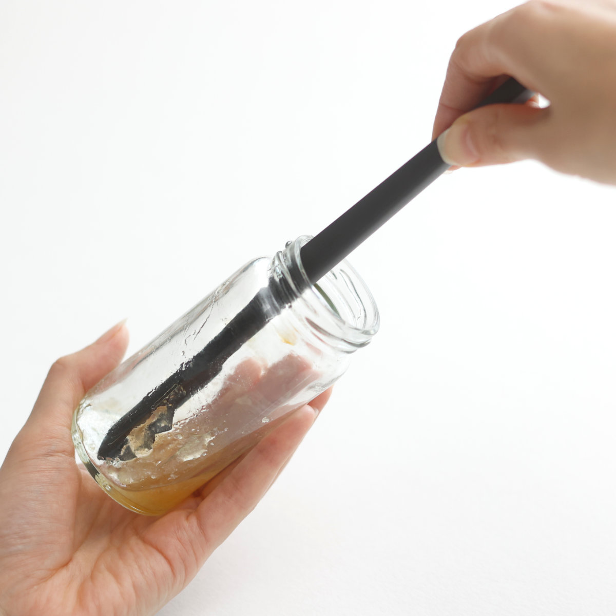 長めの柄で深めの容器にも届く