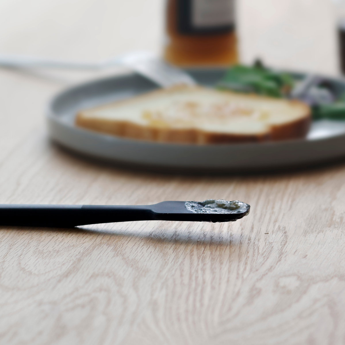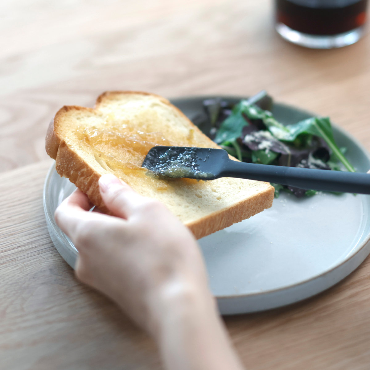 スプーンの裏面はフラットなデザインになっているため、ジャムやバター、クリームなどもスムーズに塗ることができます。パンの上に直接のせても均一に広げやすいです。