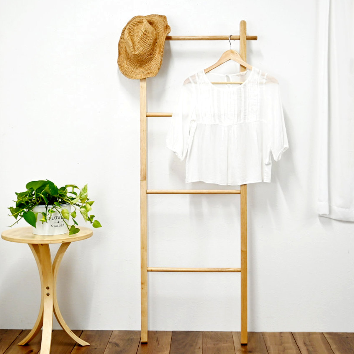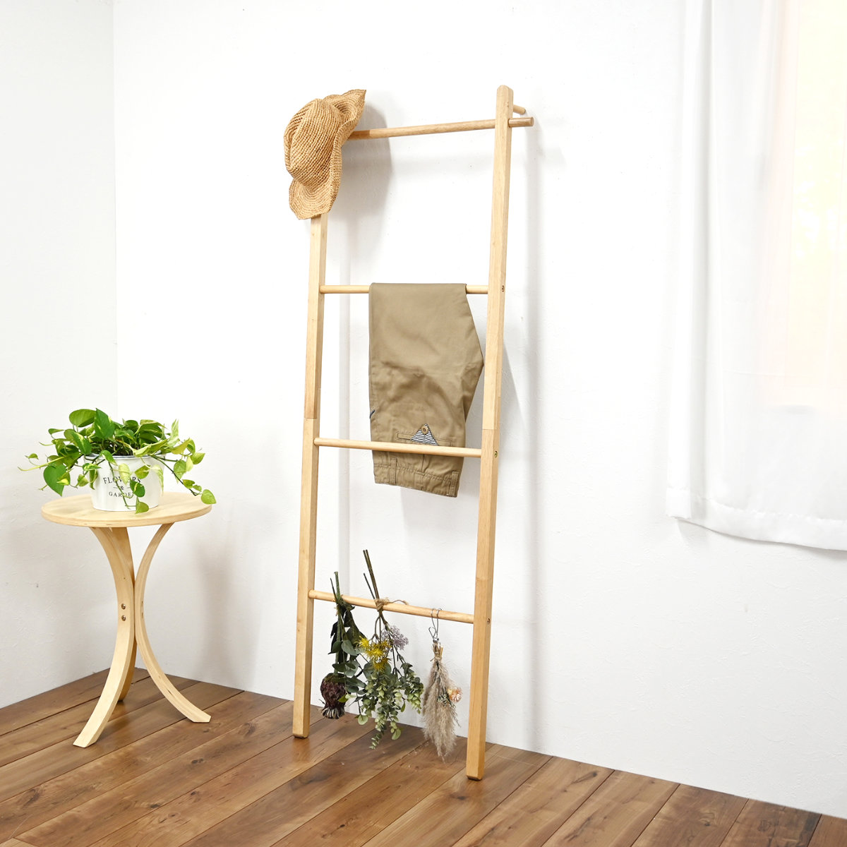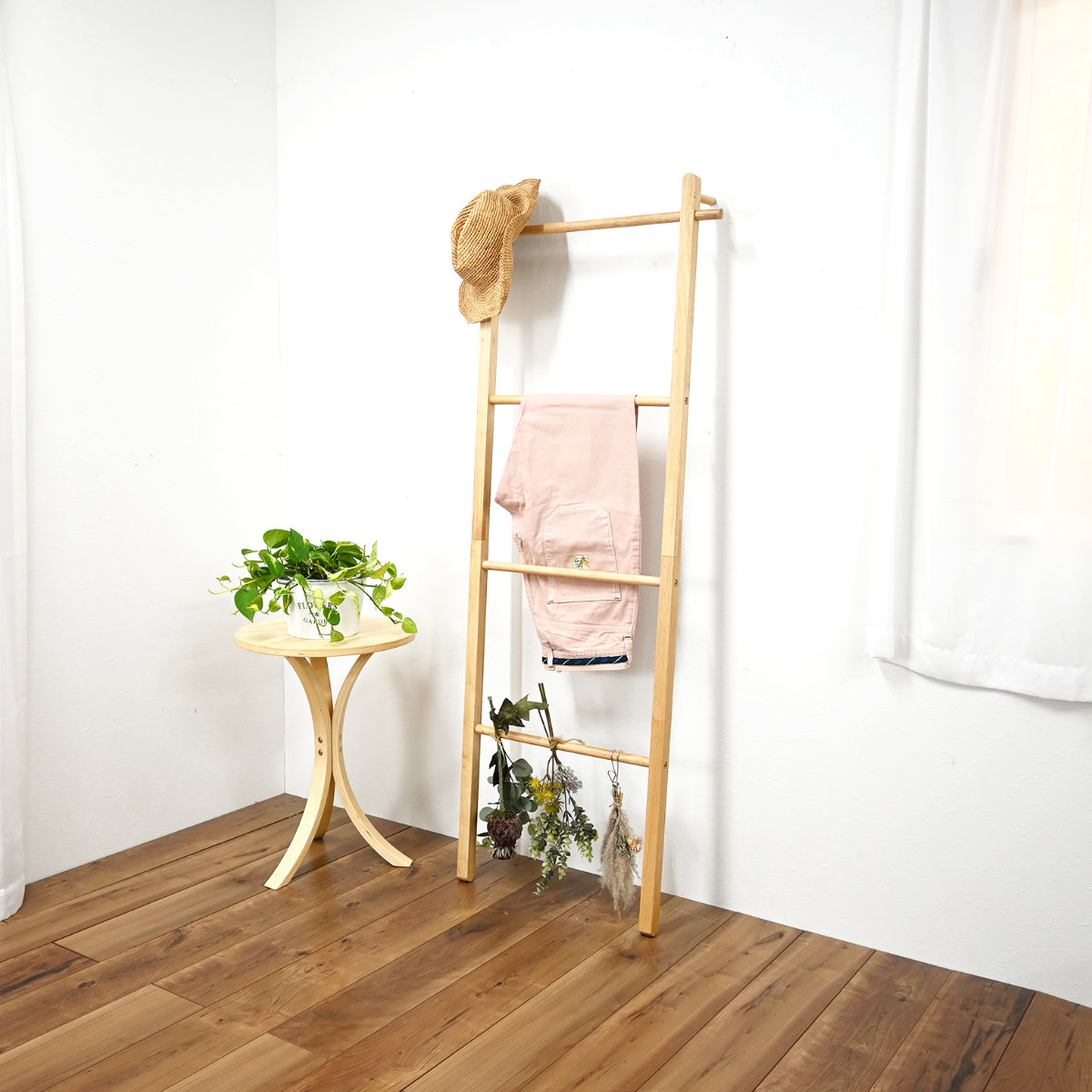 天然木のやさしいデザイン 立て掛けるだけのラダーハンガー