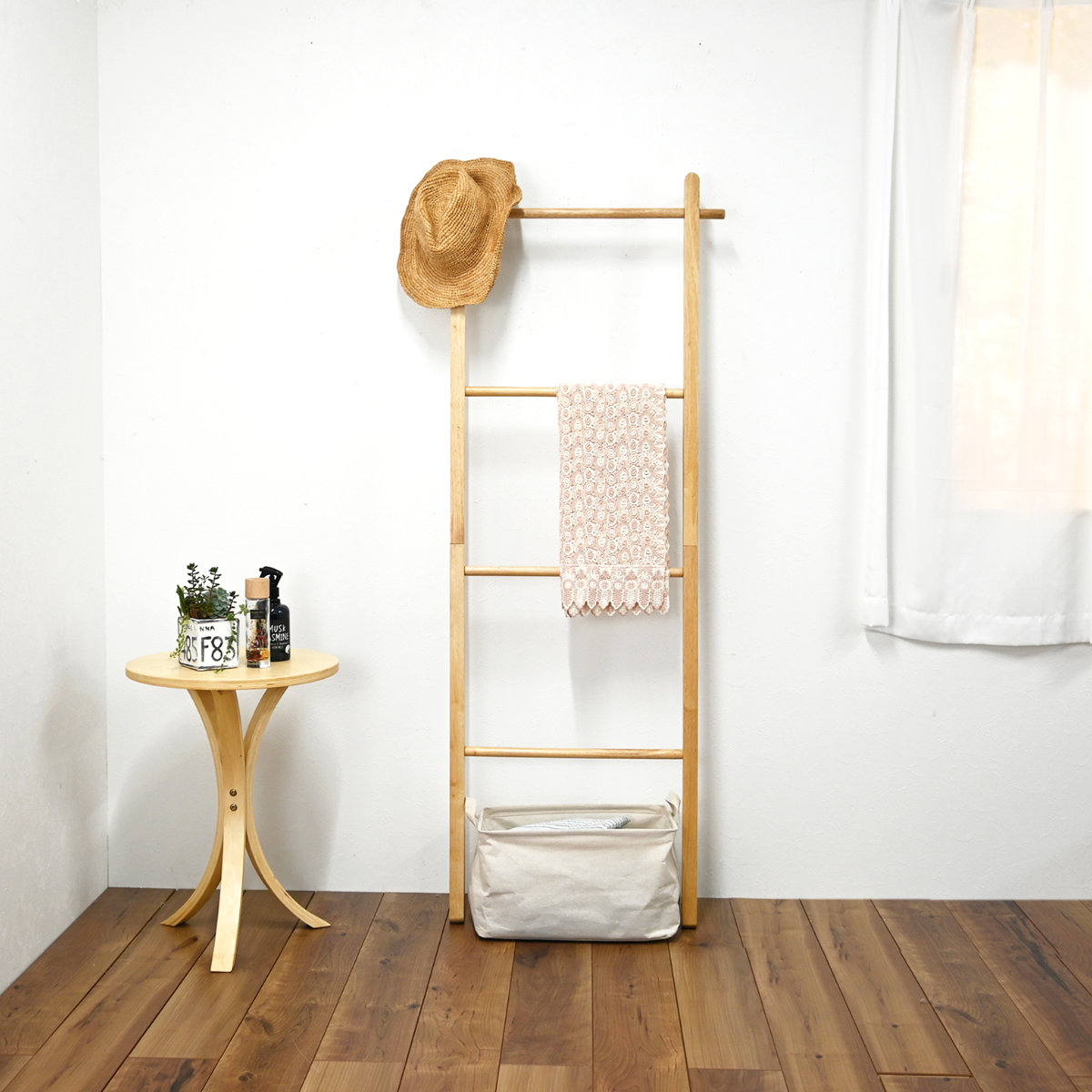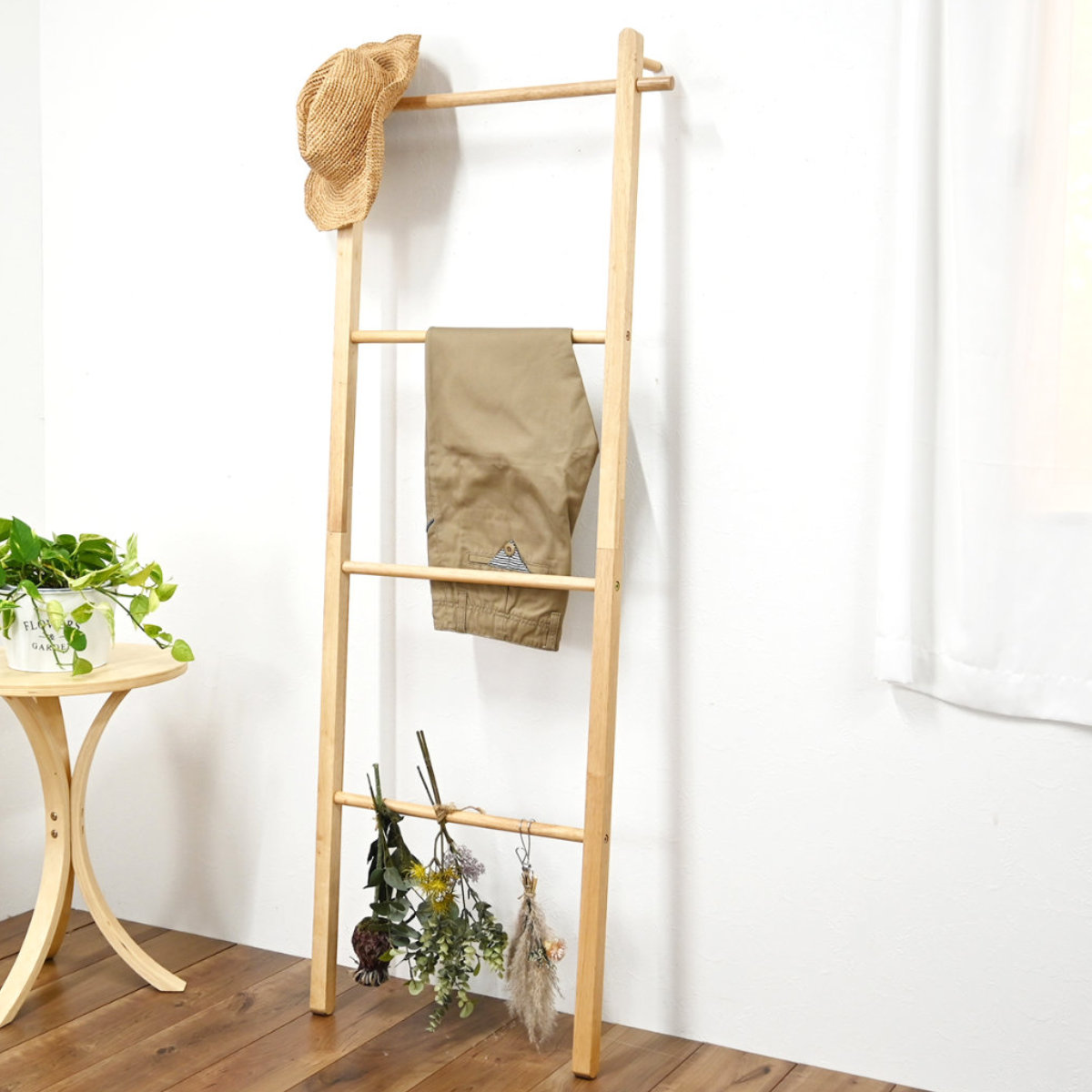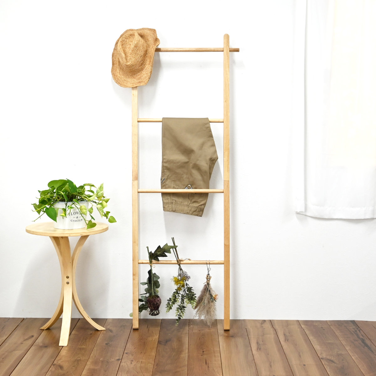 天然木のやさしいデザイン 立て掛けるだけのラダーハンガー