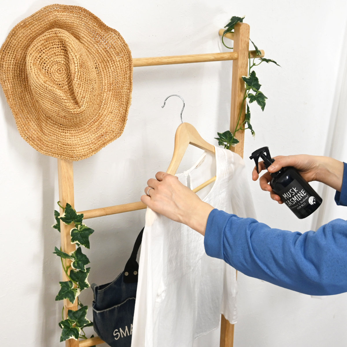 服やバッグ、帽子などをまとめて収納可能。ハンガーやS字フックを使えば、自分好みにアレンジして使えます。除菌・消臭スプレーも掛けられ、その場でサッと使えて便利です。