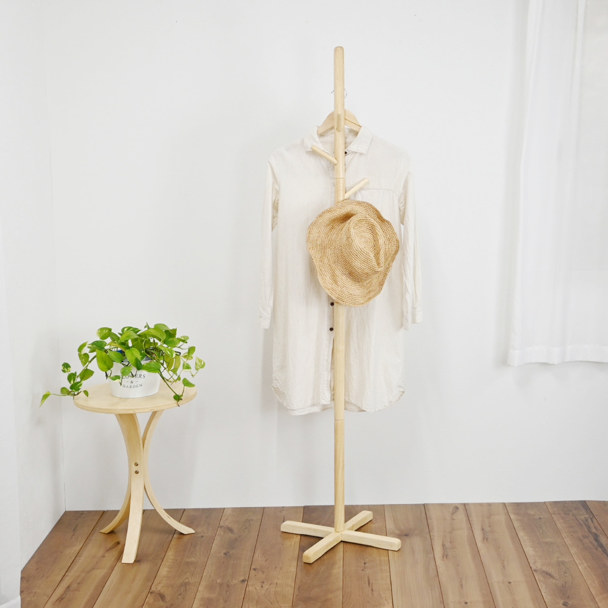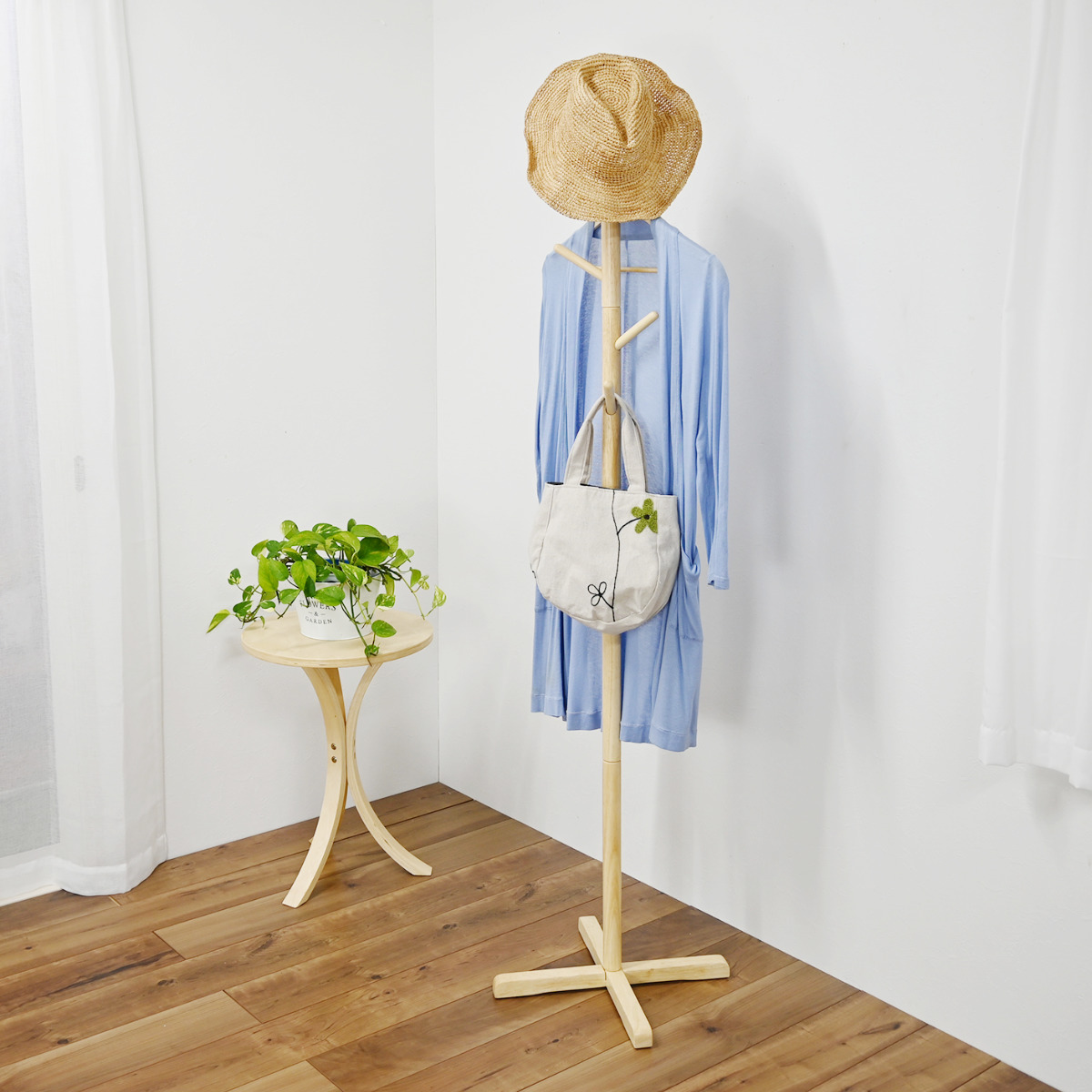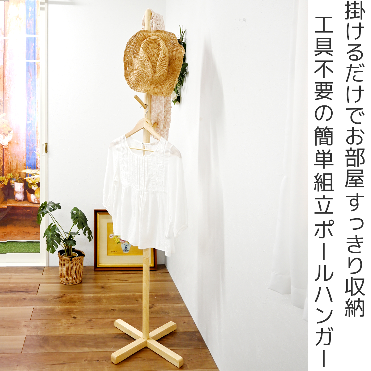 置くだけでお部屋すっきり 天然木ポールハンガー