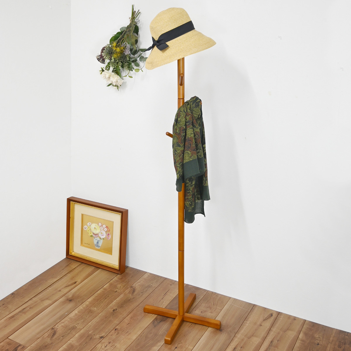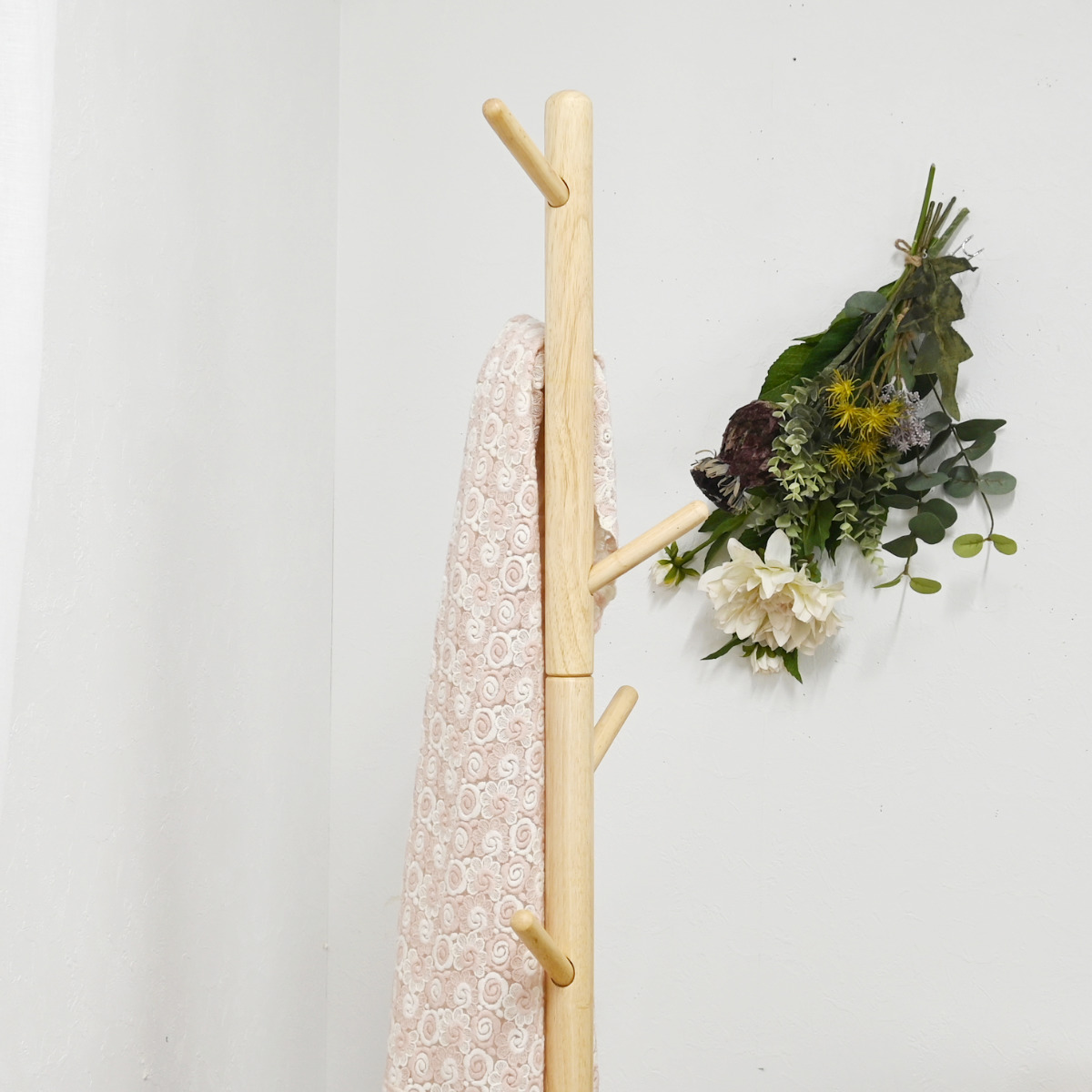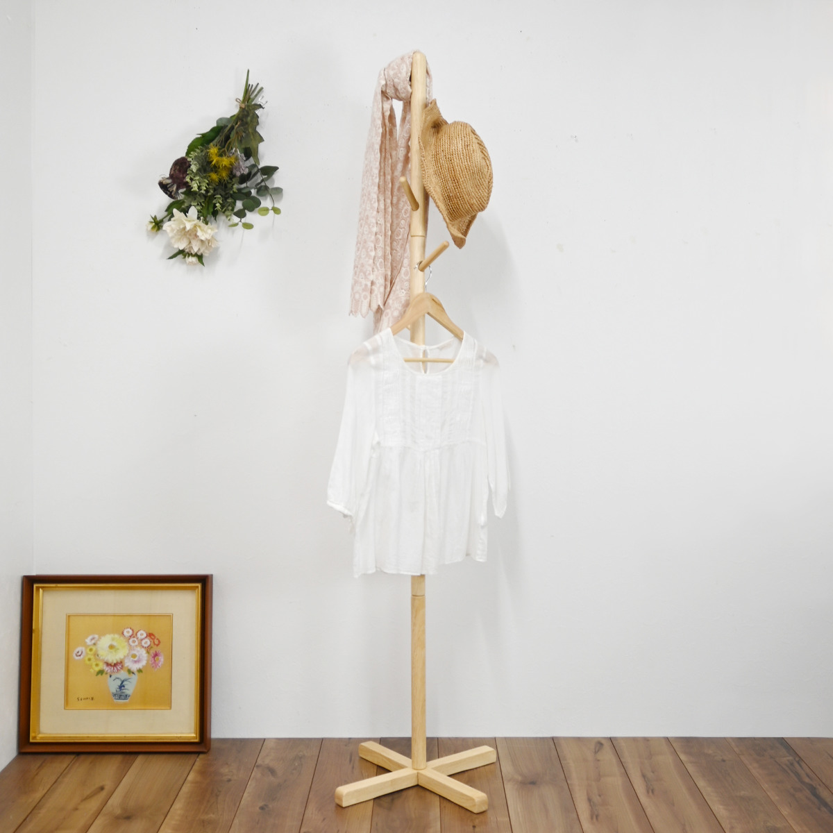 置くだけでお部屋すっきり 天然木ポールハンガー
