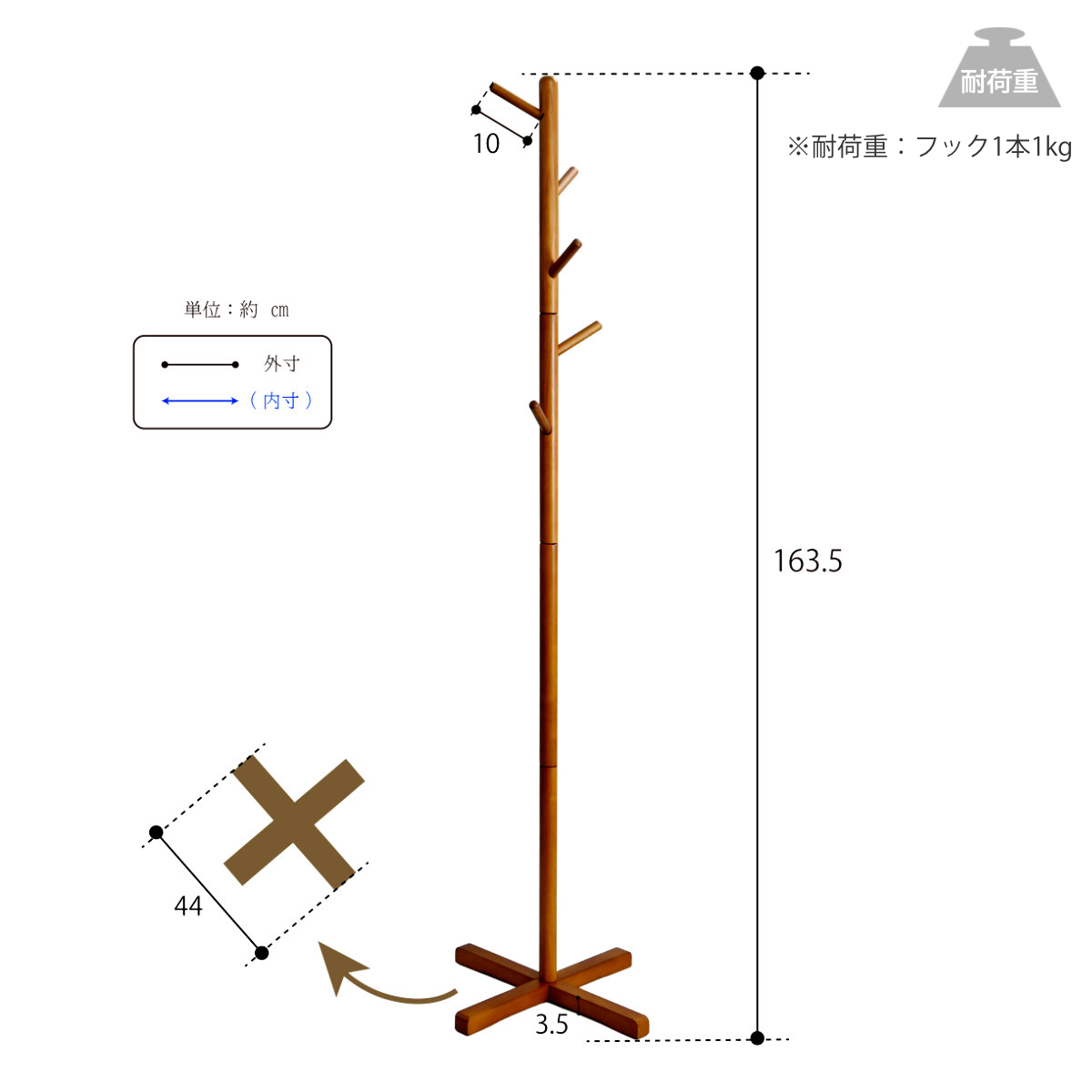 | サイズ | 約 幅44×奥行44×高さ163.5(cm) |