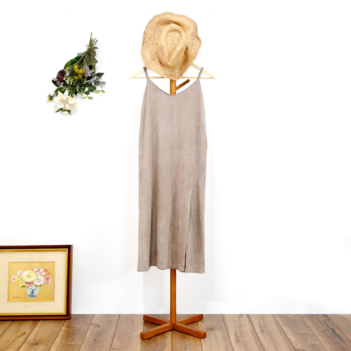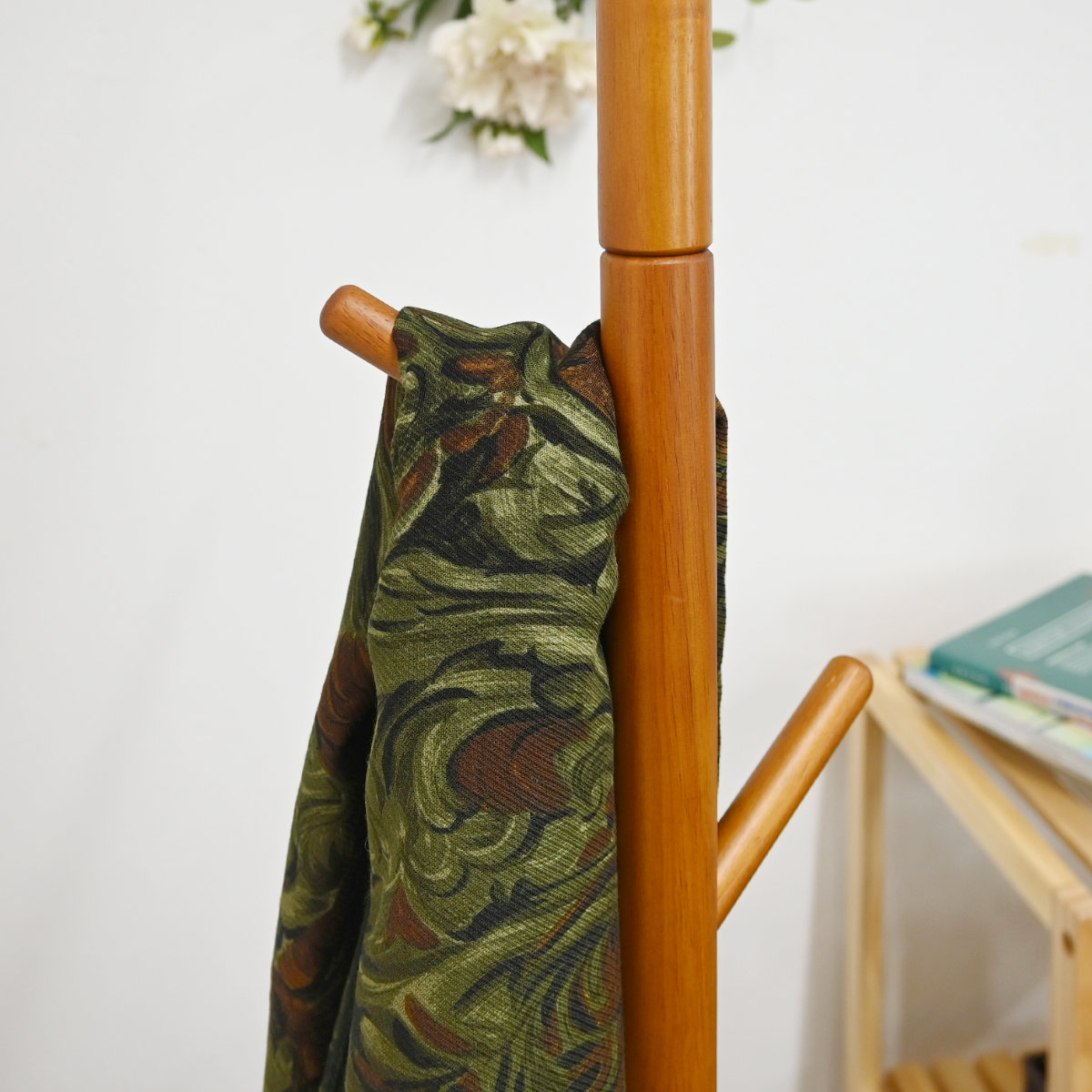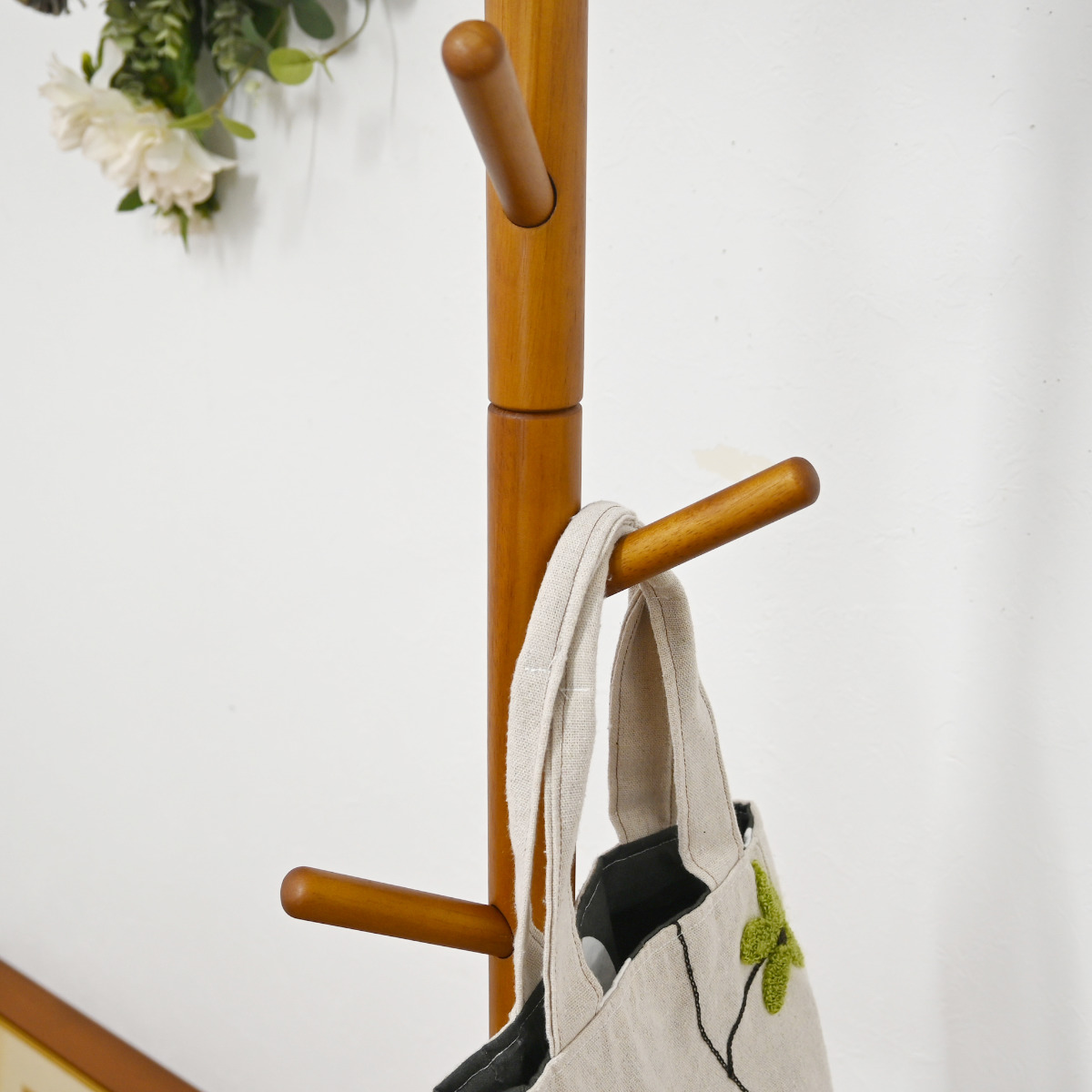 バランスよく支える設計で、コートやバッグを掛けても安定感があります。